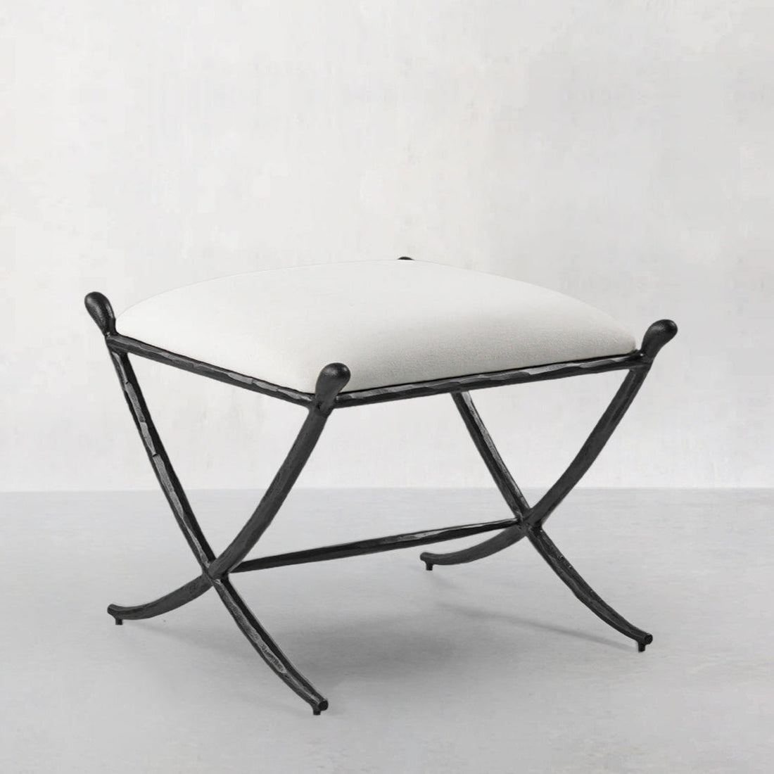 Hand-Forged Metal Backless Fabric Swivel Stool