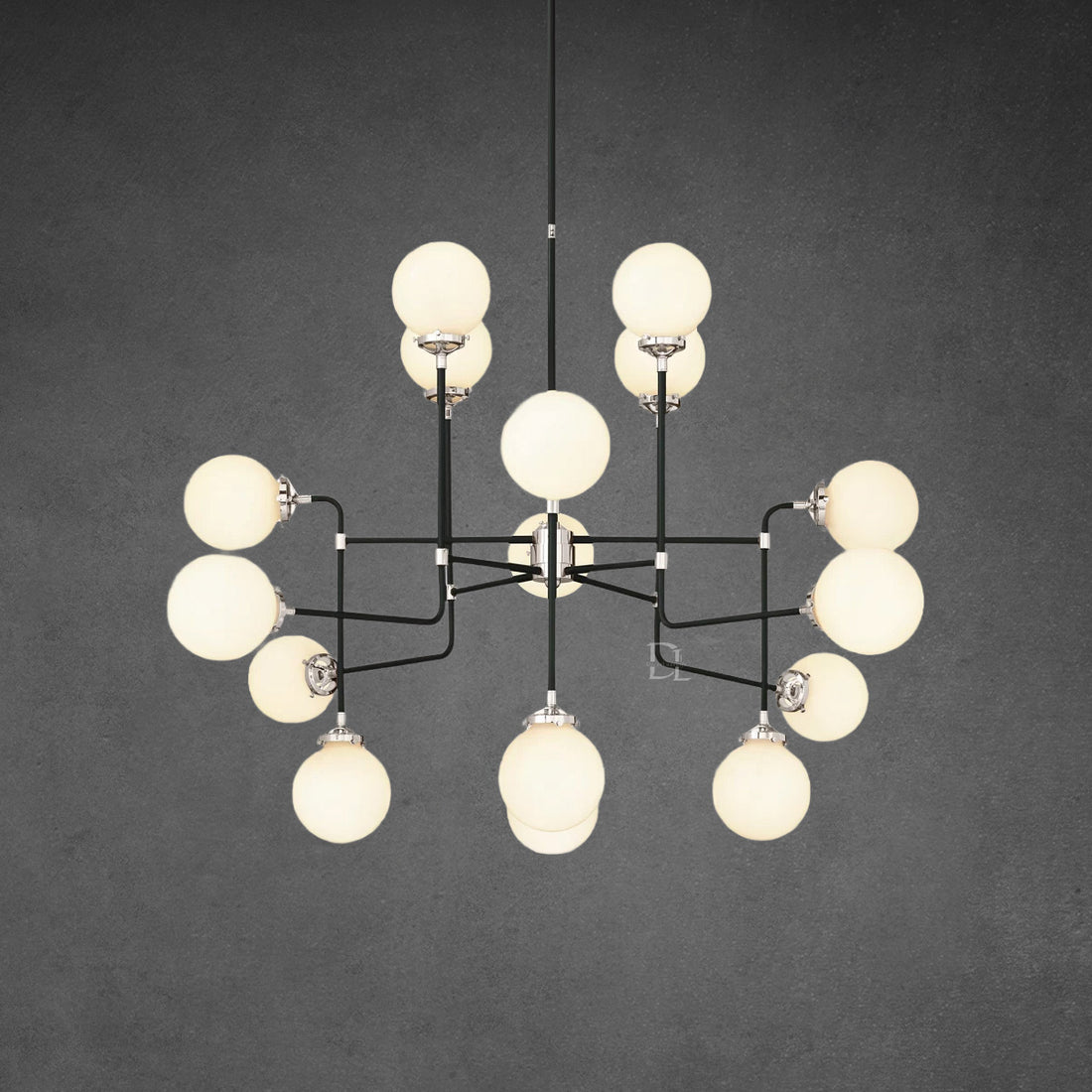 Bistro Globe Milk Glass Chandelier 56"