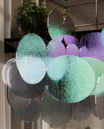 - Material Play: A mix of Crystal with silver mica and Crystal opal finishes was used to create depth and a shimmering effect, resembling sunlight catching on fluttering leaves.