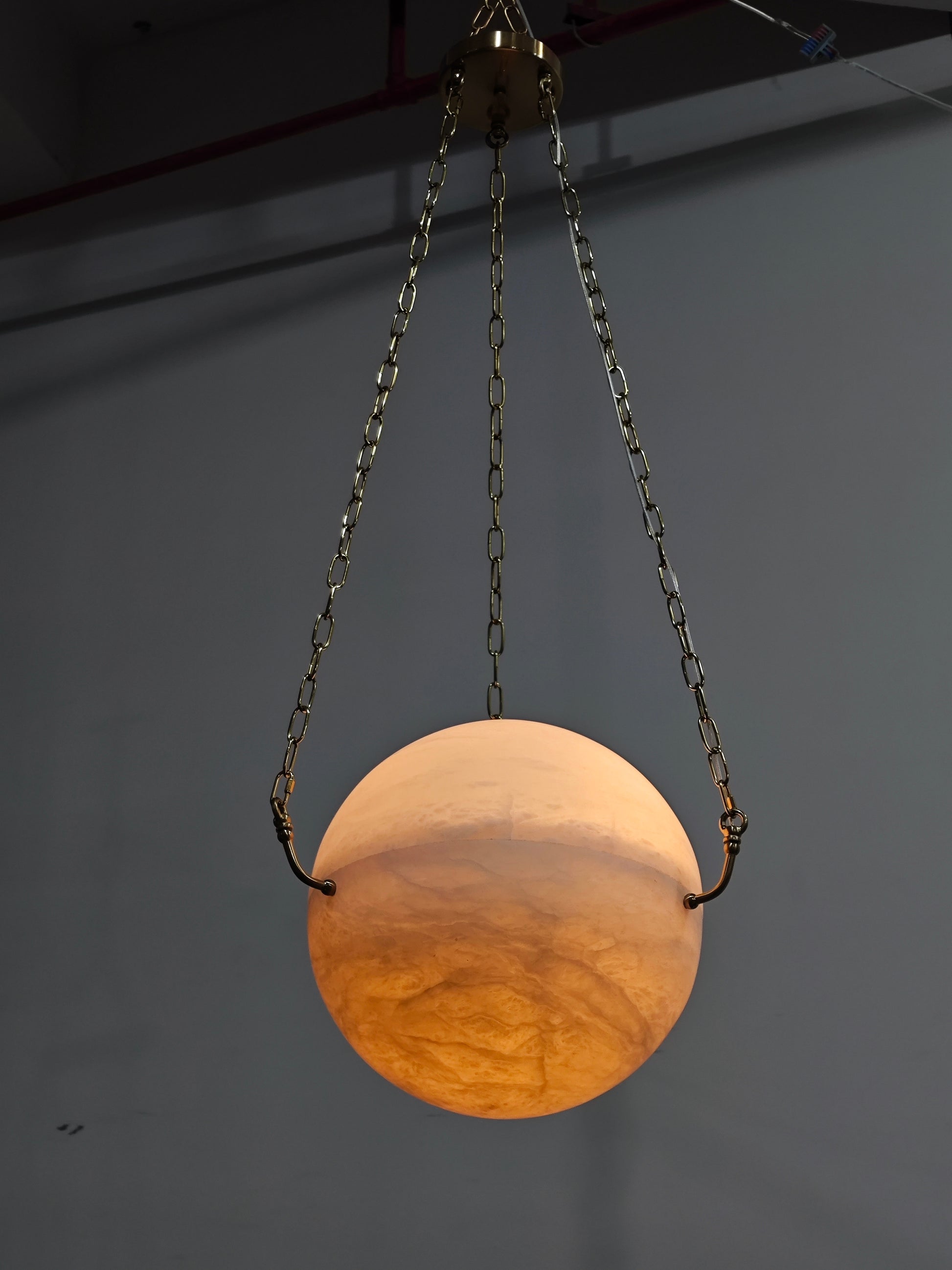 Aaron Alabaster Sphere Suspension Lamp, Pendant Kitchen Island Lamp