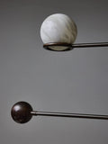 Introduce an artful dynamic to your space with our Alabaster Double Pendulum Chandelier. This stunning piece features a gracefully arched structure in a warm light bronze brass finish, from which two solid alabaster globes are suspended. The counterbalanced pendulums allow you to manually adjust the height of each light, creating a custom, sculptural look. The milky alabaster provides a soft, diffused glow, perfect for creating an ambient and sophisticated atmosphere in any room.