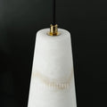This alabaster pendant light is crafted from natural marble imported from Spain, where intricate patterns evolve over time, resulting in a distinctive and beautiful design. Each marble pendant light boasts a unique pattern, carefully selected and polished for durability. With strong light transmission and a non-glare effect, it emanates a gentle, bright light, creating an ambiance of subtle radiance.