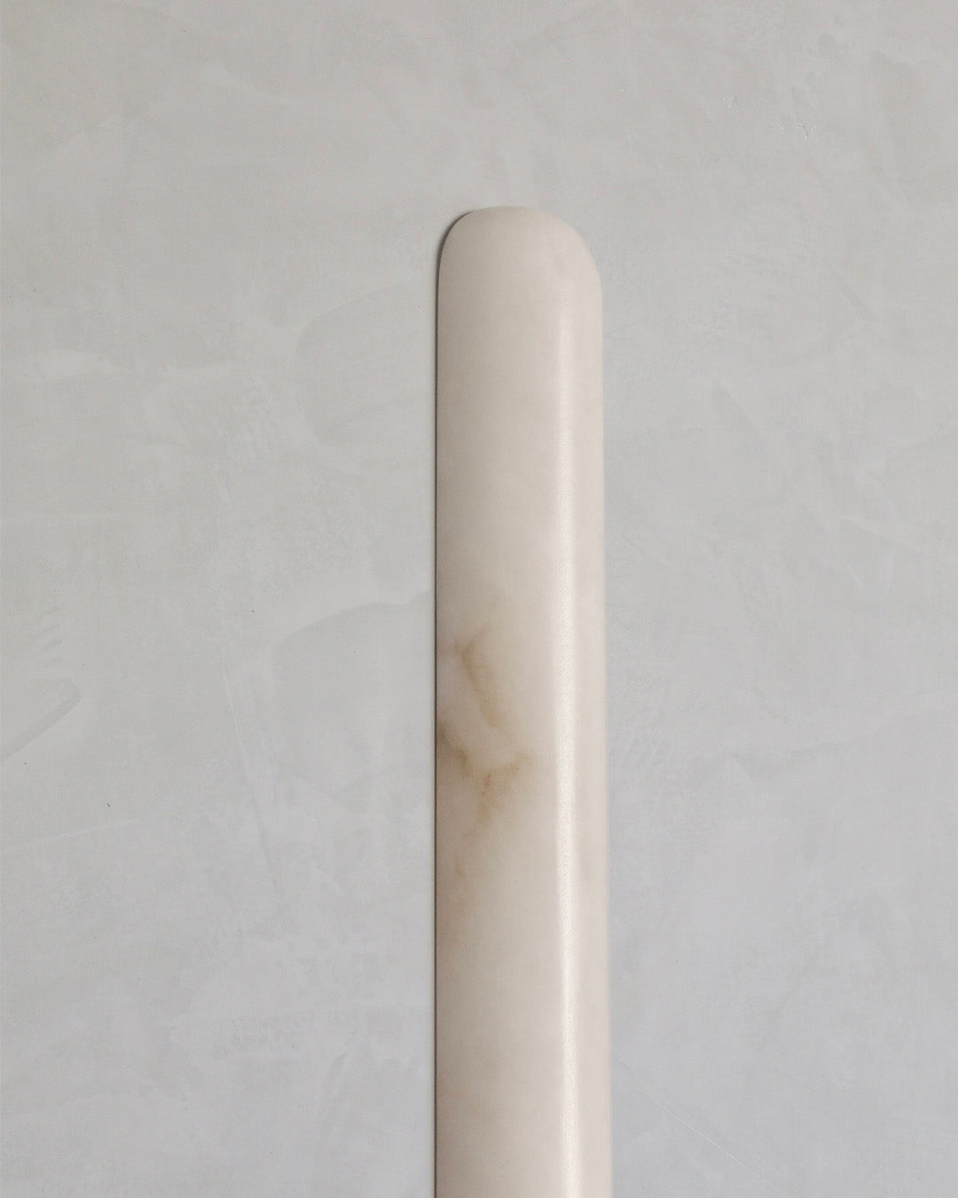 This beautiful tubular wall light by Spanish brand Contain is made from milky alabaster stone sourced from a local quarry. Their team spent a year working and exploring alabaster stone to produce the latest lighting collection. Handmade in Mallorca, Spain.