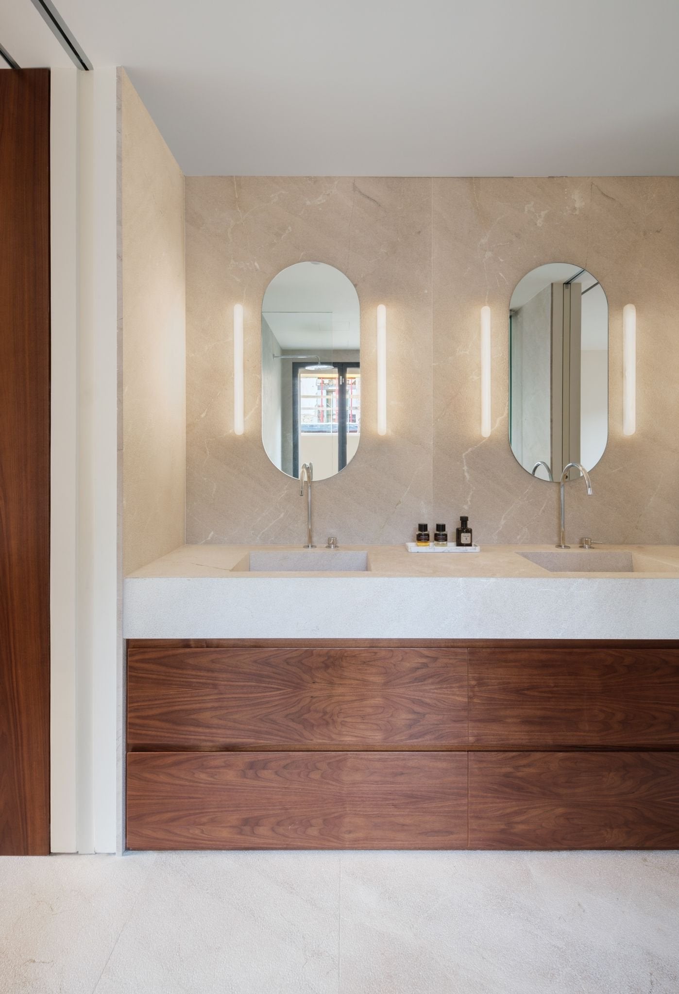 This beautiful tubular wall light by Spanish brand Contain is made from milky alabaster stone sourced from a local quarry. Their team spent a year working and exploring alabaster stone to produce the latest lighting collection. Handmade in Mallorca, Spain.