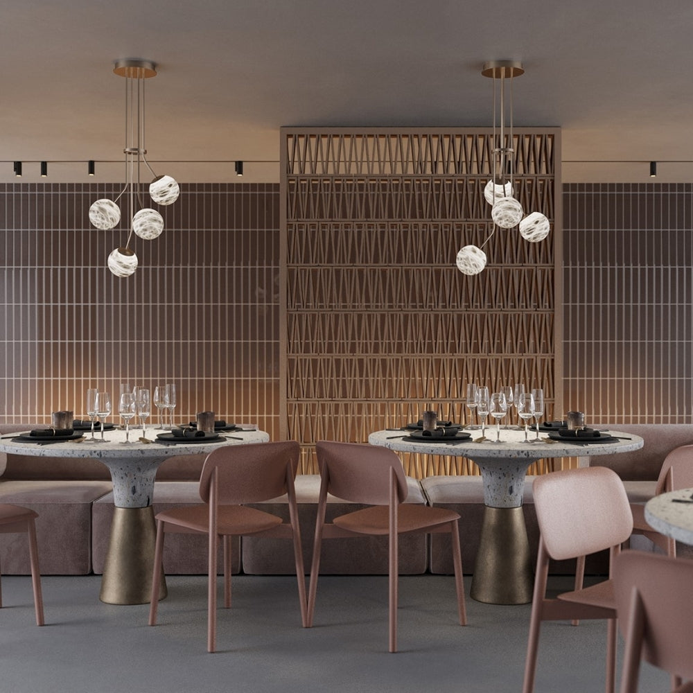 The Orb 4 Pendant by Alabastera creates a spectacular centrepiece in any residential or commercial interior. Designed and handcrafted by the artisan team at Alabastera, this breathtaking pendant light displays four stunning spherical shades, each formed from natural alabaster. Displaying a beautiful, naturally formed pattern and exceptional translucency, this luxurious shade material lends an effortless opulence to any design scheme.