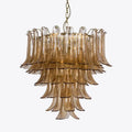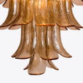 Tiers of curved, amber coloured glass are individually hung onto a satin brass frame to create an outstanding mid-century inspired, petal chandelier.