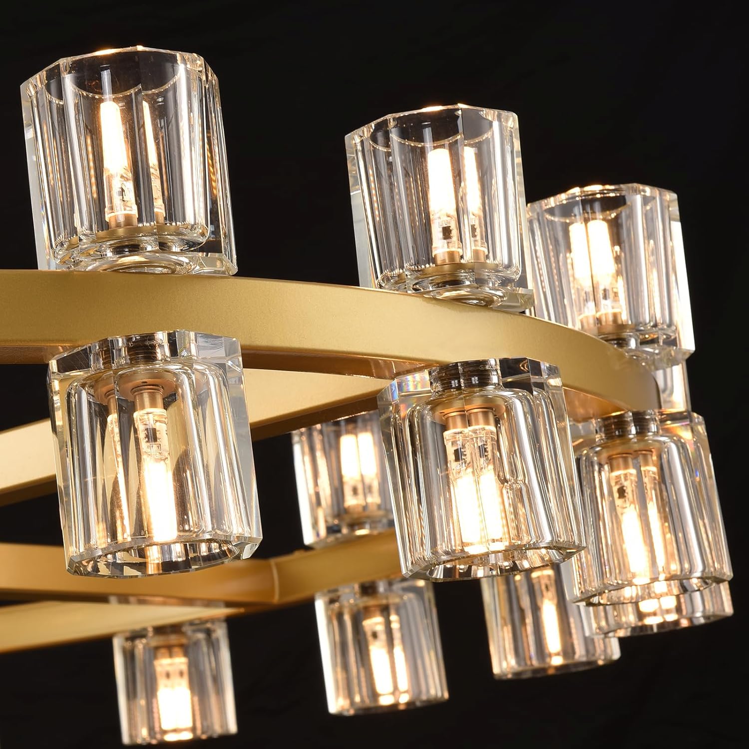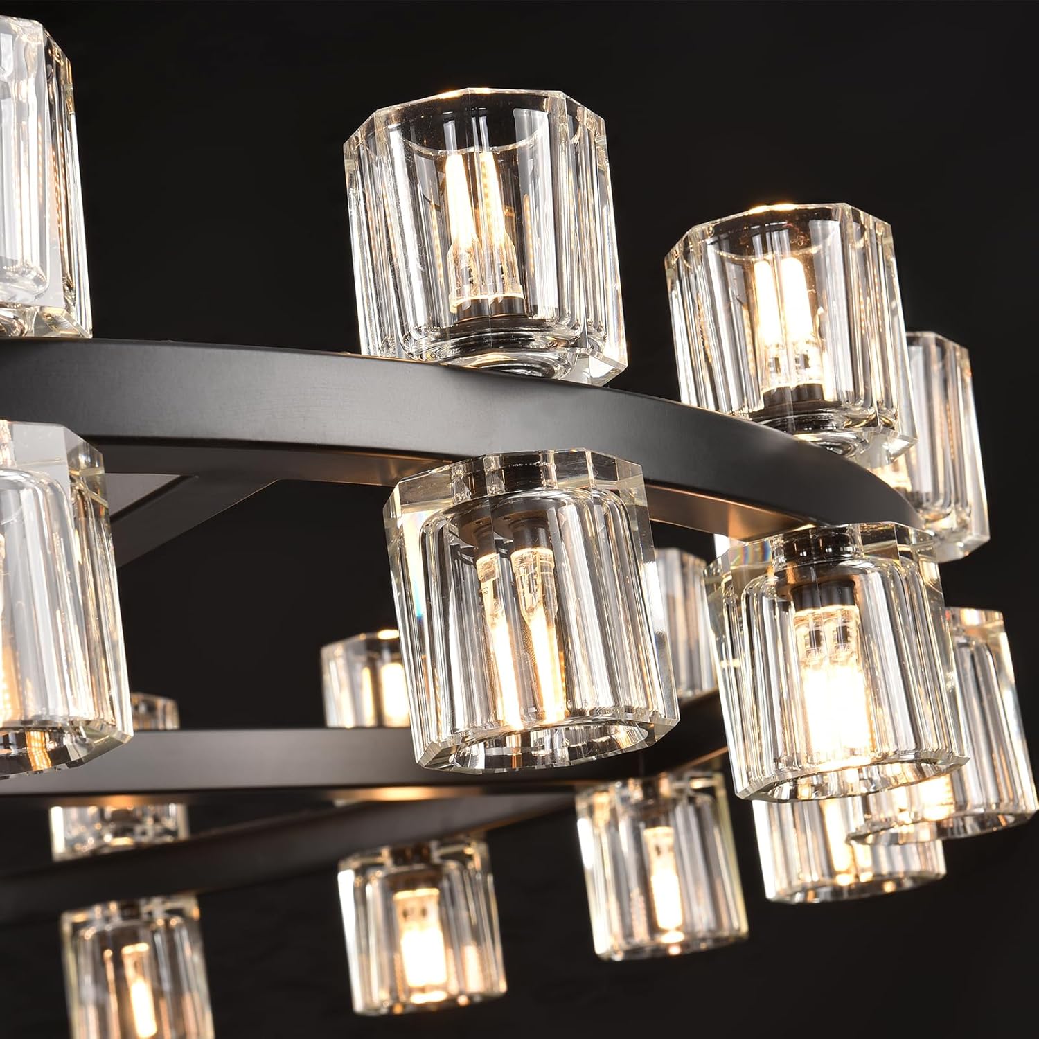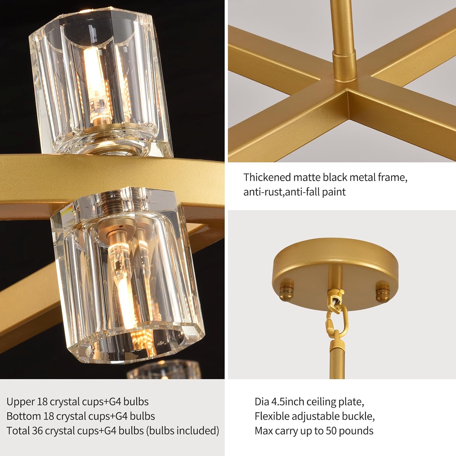 This crystal chandelier is thoughtfully designed by the designer, with each part of the integrated frame precision-cut by machines. It features 36 hexagonal crystal lampshades that blend perfectly with any home décor style. The K9 crystal reflects a mesmerizing brilliance that is sure to catch the eye. It’s the perfect decoration for any space.