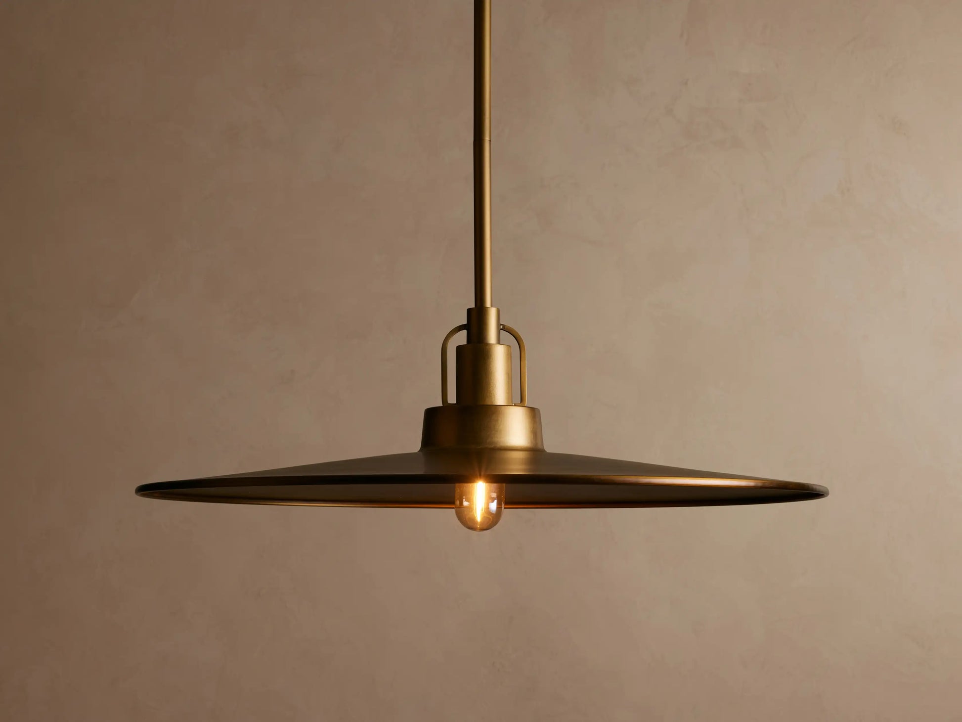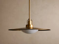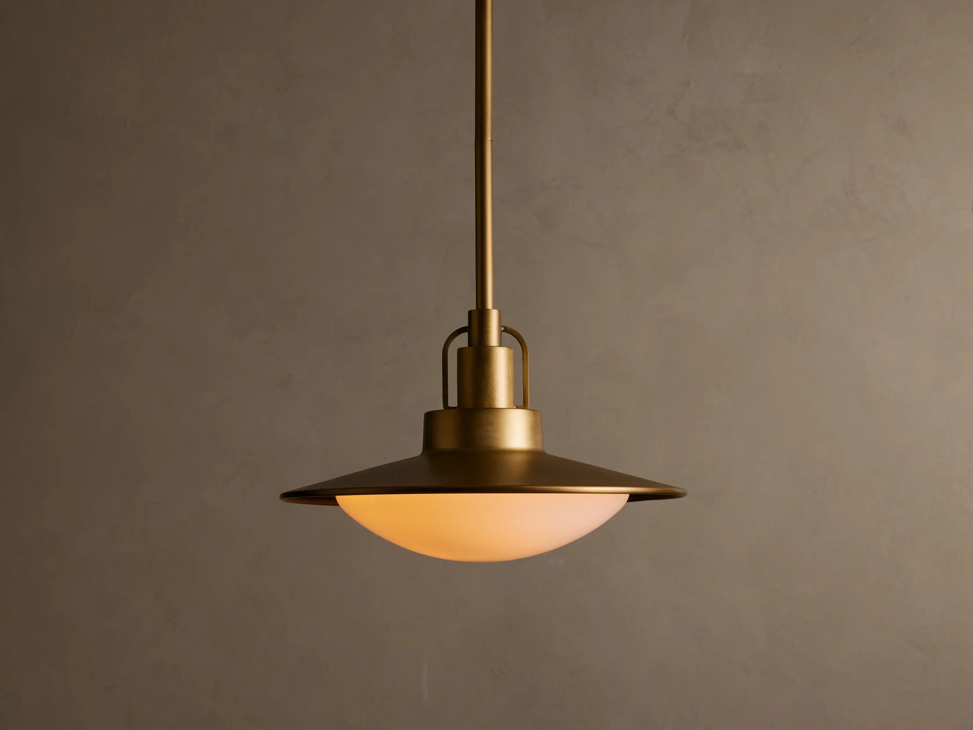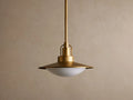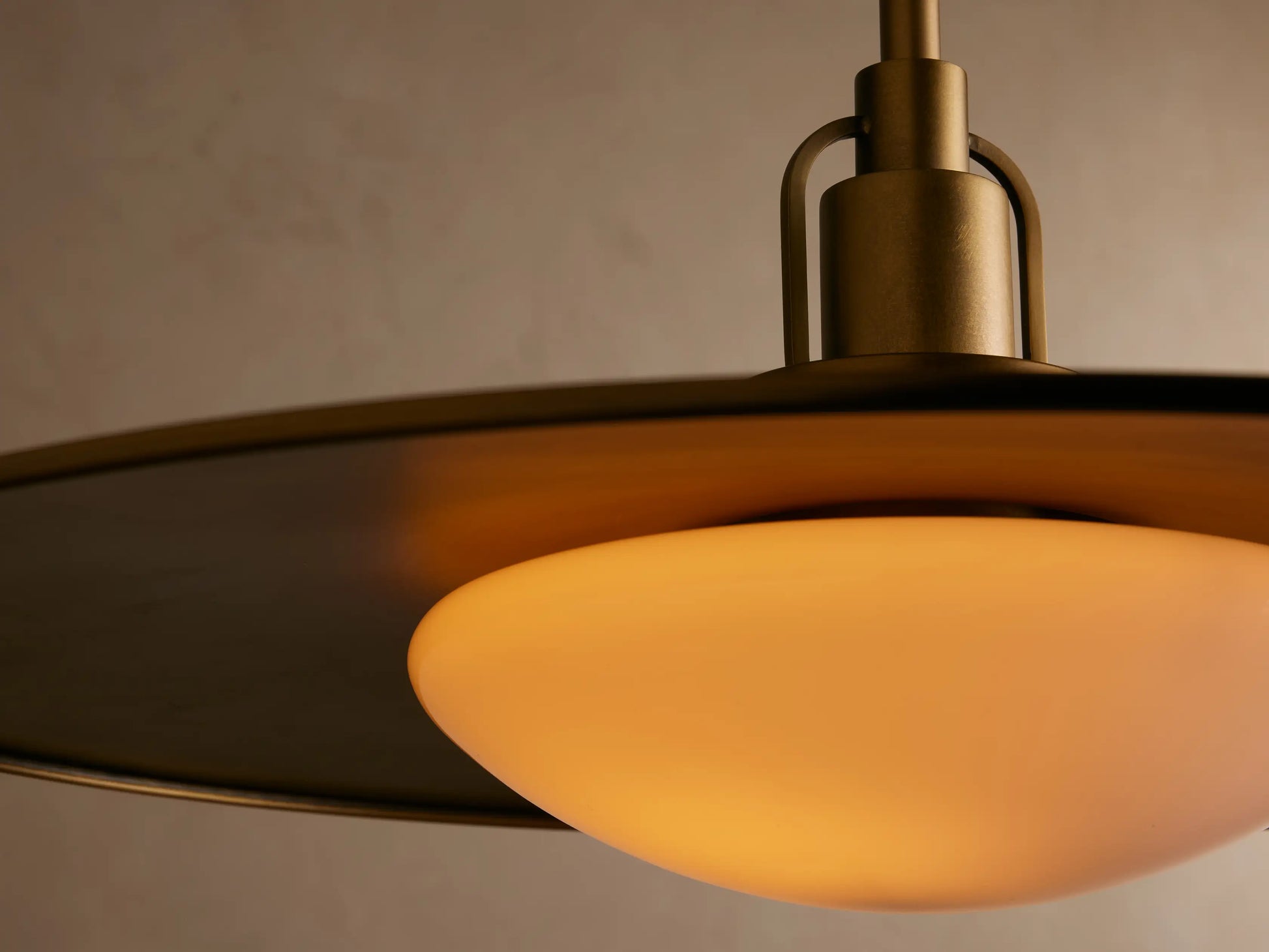 Forged from iron with a lustrous brass finish, our Argent Lighting Collection displays a modern-yet-simple silhouette. Featuring a distinctive disc-shaped shade, complemented by an opal glass dome that diffuses a soft glow, Argent adds a minimalistic flare to any setting.