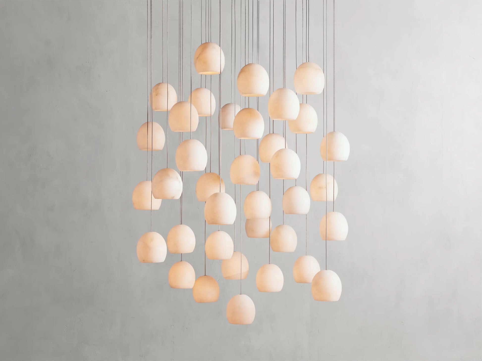 Featuring an adjustable cable cascading into a curved shade made from natural alabaster stone, our Arica Collection adds a touch of organic elegance. Designed to highlight the beautiful variations found in natural alabaster, each luminous shade showcases delicate swirls of unique veining making each pendant truly one-of-a-kind.