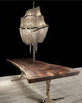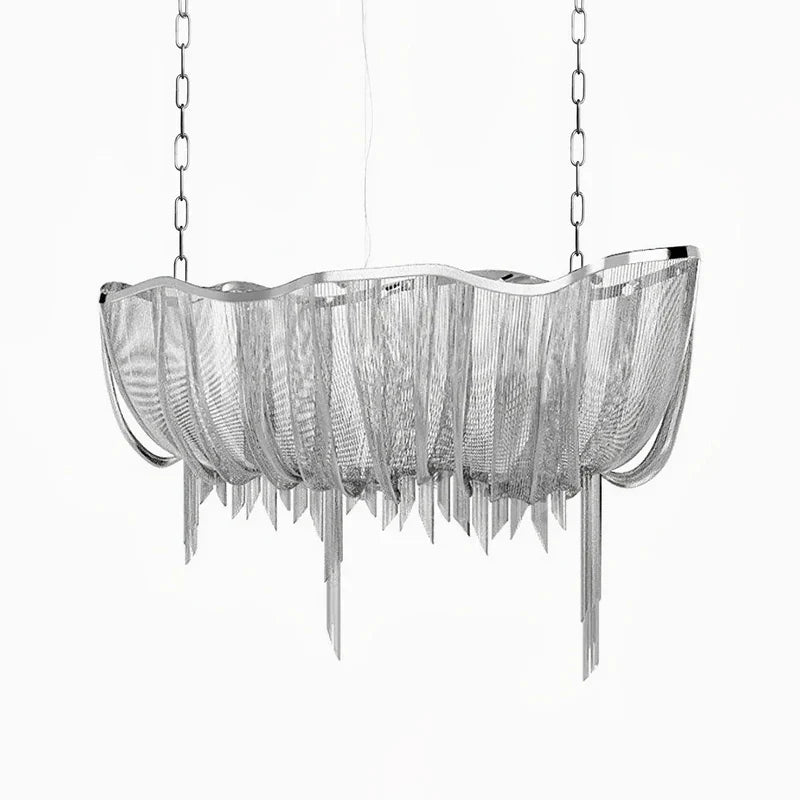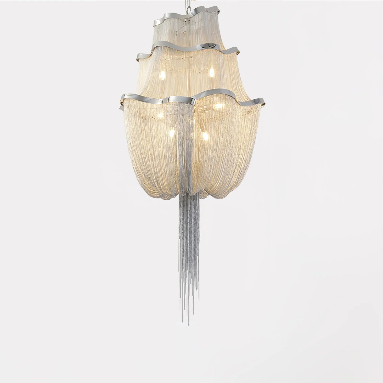 Seemingly alive, Atlantis’ shimmering light creates a vibrant source of energy. Its mesmerizing, organic effect is created by hundreds of illuminated lengths of draped, nickel chain. Like water in the ocean, Atlantis’ chains appear liquid, cascading over its gloss nickel bands and falling down towards the abyss before turning back into itself. Atlantis is composed of almost three miles of chain, meticulously hand-crafted by master China artisans.