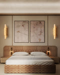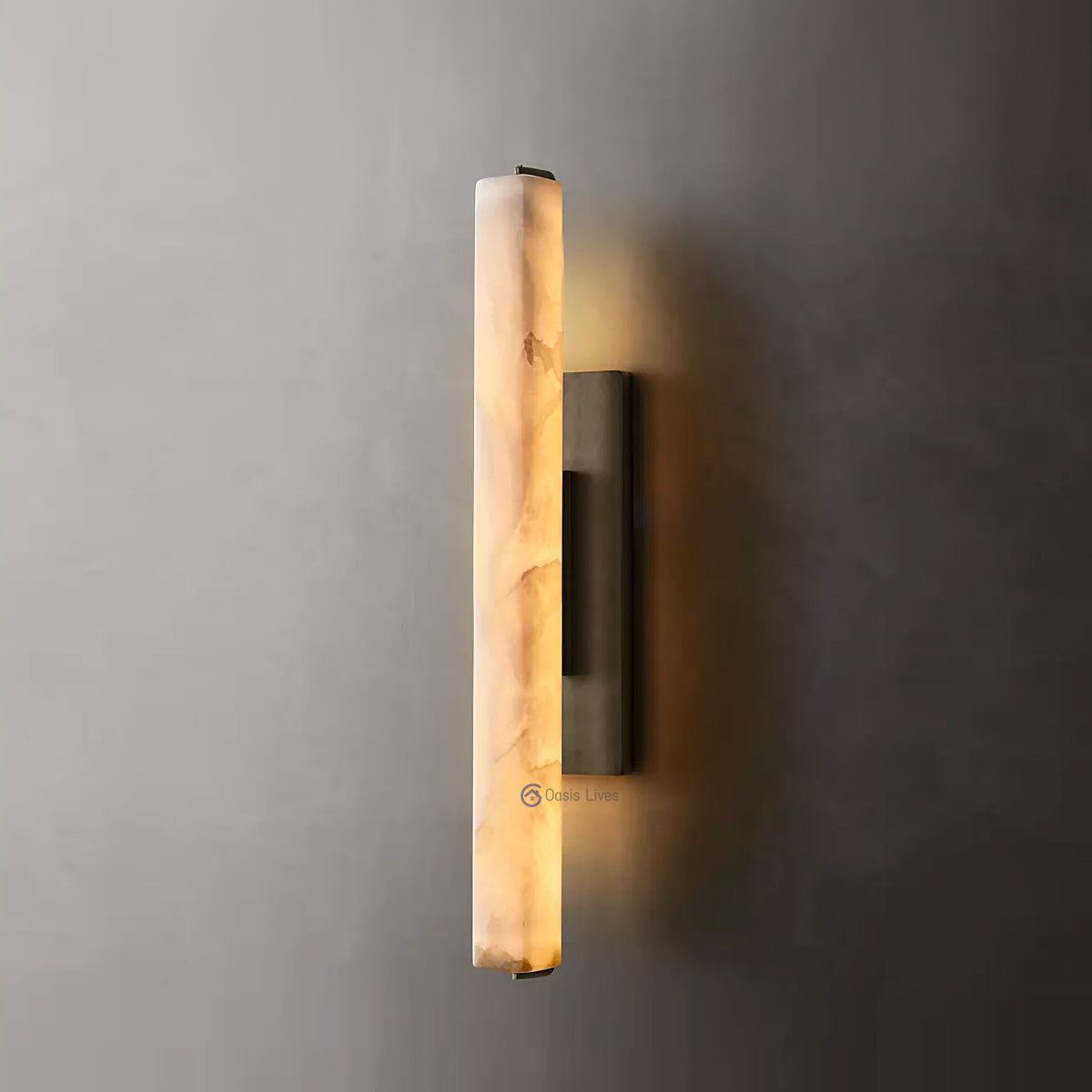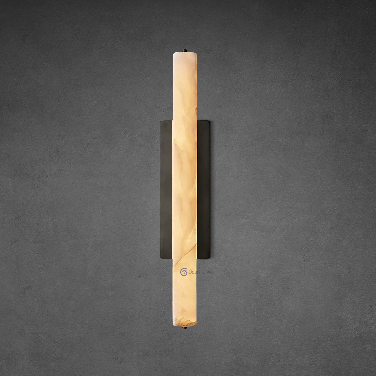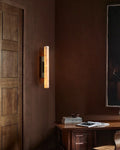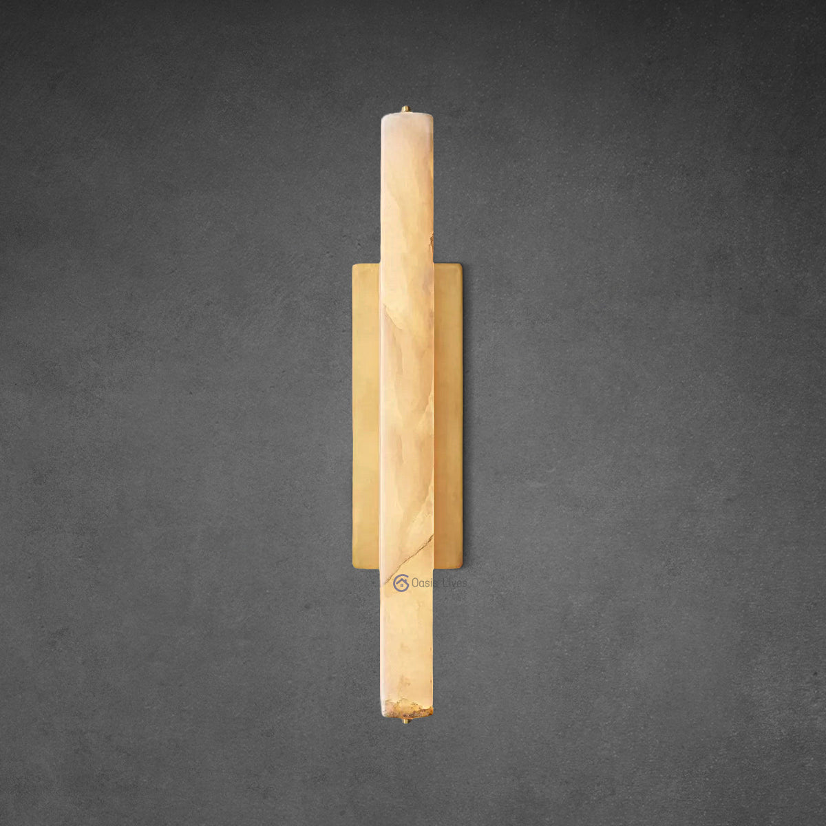 Audubon captures the spirit of 1960s Italian minimalism, featuring a prism of alabaster mounted on a solid brass frame. The collection is both striking and restrained, evoking the warmth of candlelight through elongated LEDs that cast beautiful light through the translucent stone.