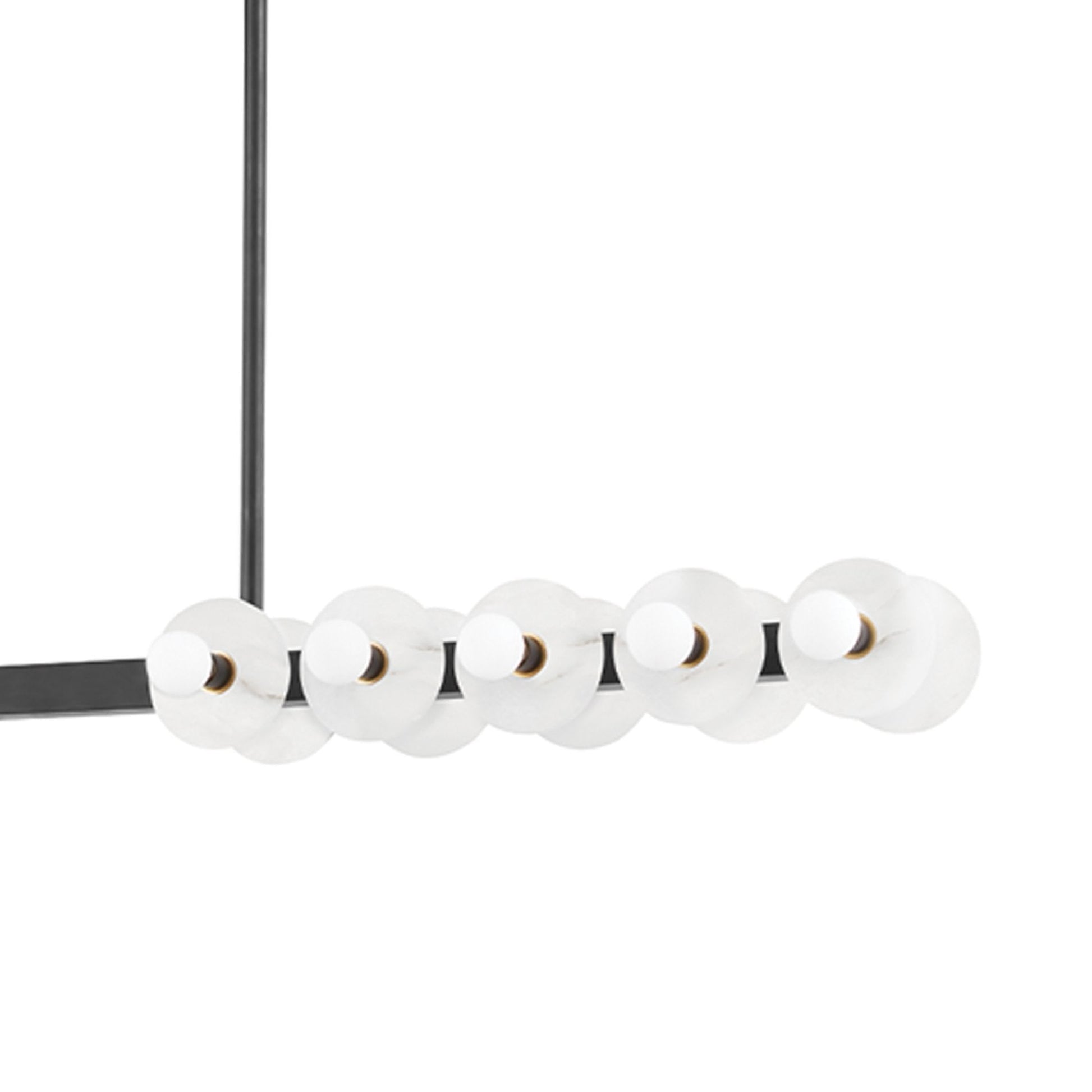 Gorgeous over a kitchen island or a large dining table, the Austen Linear Pendant Light from Hudson Valley Lighting is augmented with beautiful alabaster discs for excellent illumination.