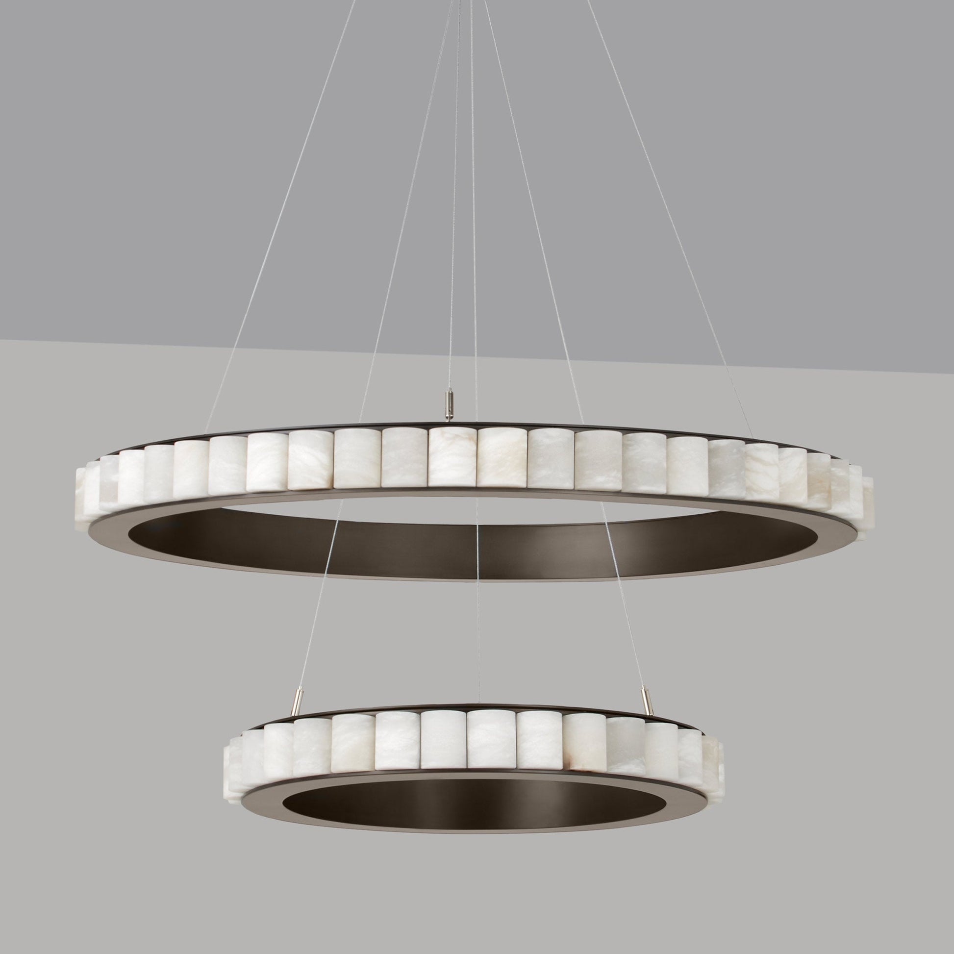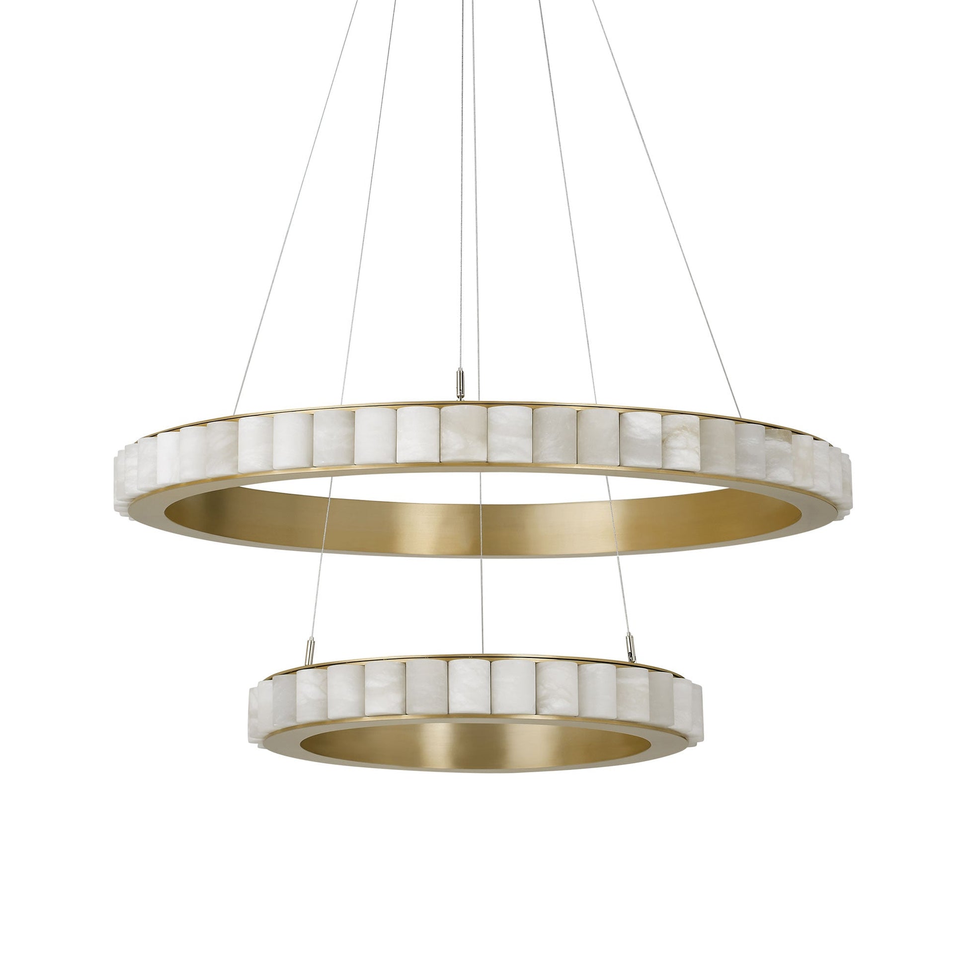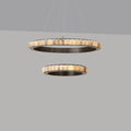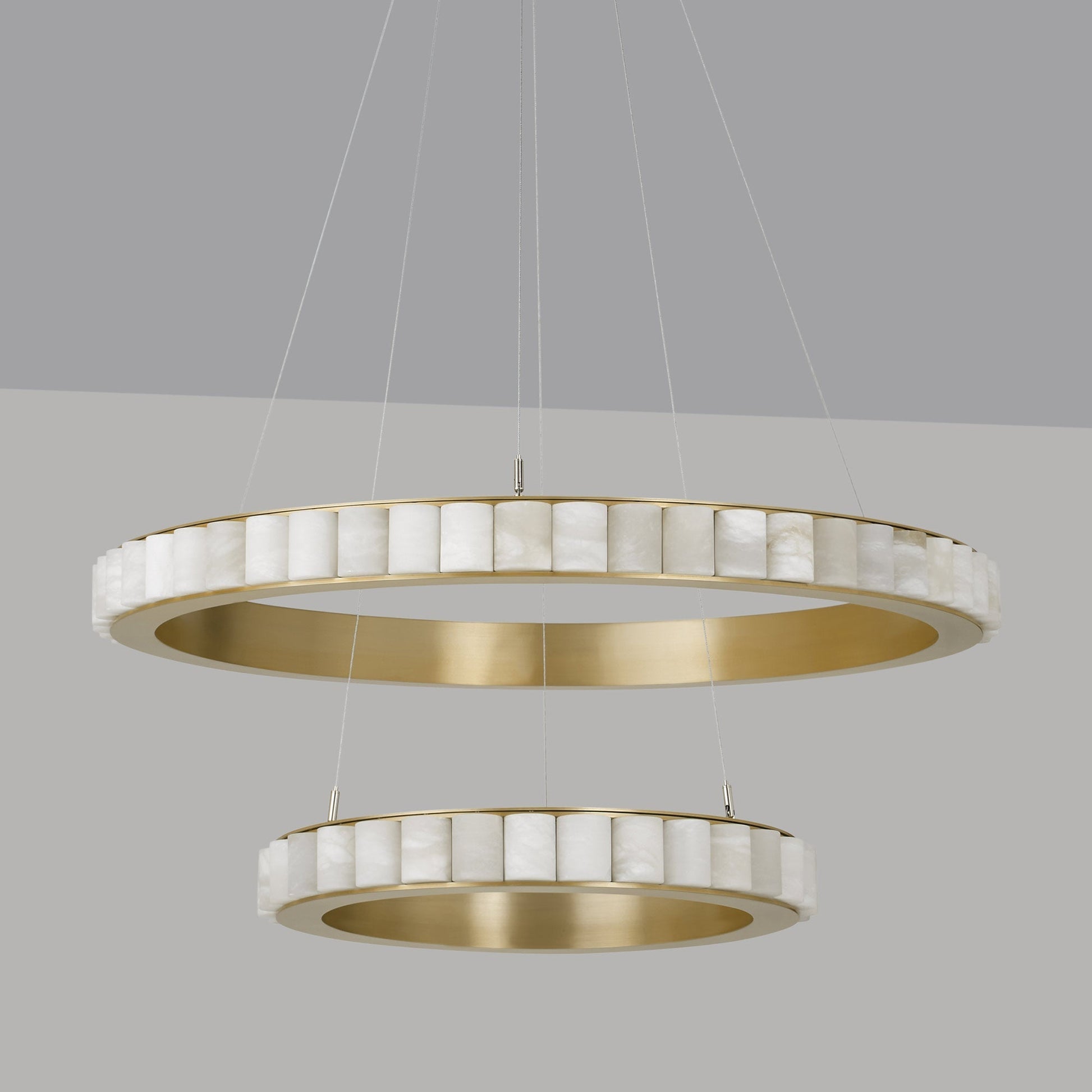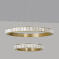 Layers of circular elegance appear to float gracefully over a custom space, adding ethereal lightness that becomes a central focus. The Avalon Halo LED Chandelier from CTO Lighting strikes a chord of artistry and glam with a ring of alabaster encased in a chic metal frame. The resulting energy-efficient lighting effects embellish the sheer dreamy feel of its dual-layer construction and rich materials.
