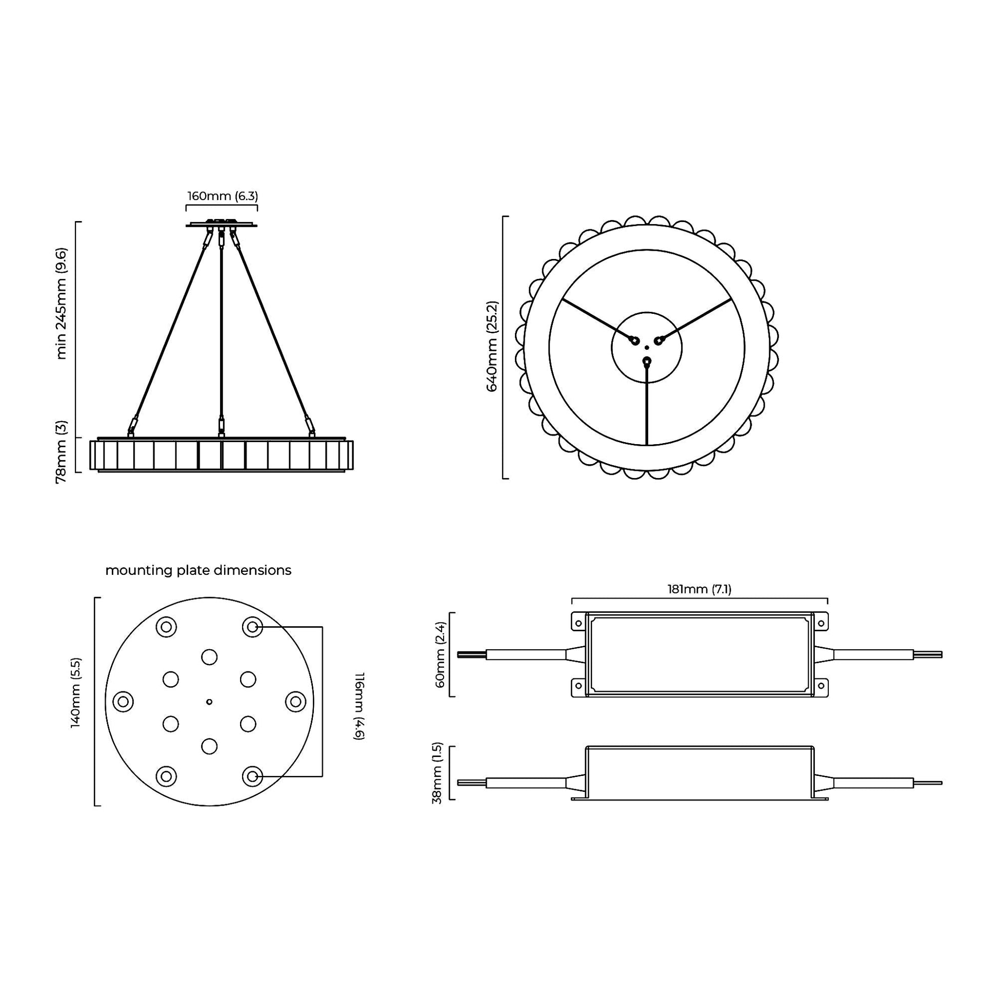 - Canopy: 6.3"D (None Mounting Kit), 9.45"D X 2.56"H (Mounting Kit)