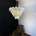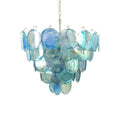 Indulge in luxury with our Blue Murano Disc Chandelier. Handcrafted with exquisite blue glass disks, this chandelier combines contemporary design and classic craftsmanship. The warm and inviting glow will elevate your home decor and create a mesmerizing focal point. Elevate your space with elegance.