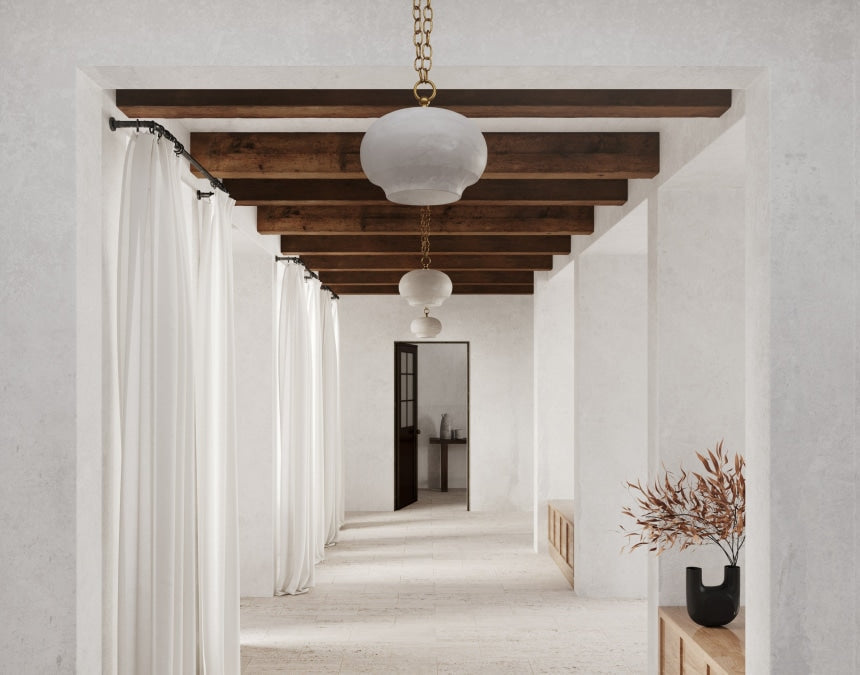Impress your guests with hand carved and polished alabaster lighting. Our heavy organic alabaster shade gives off a soft glow perfect as additional lighting to create mood in any space. The Bolivar pendant features an extra large solid brass loop held up by a thick doubled chain. Pendants are available in your choice of hand applied finish.