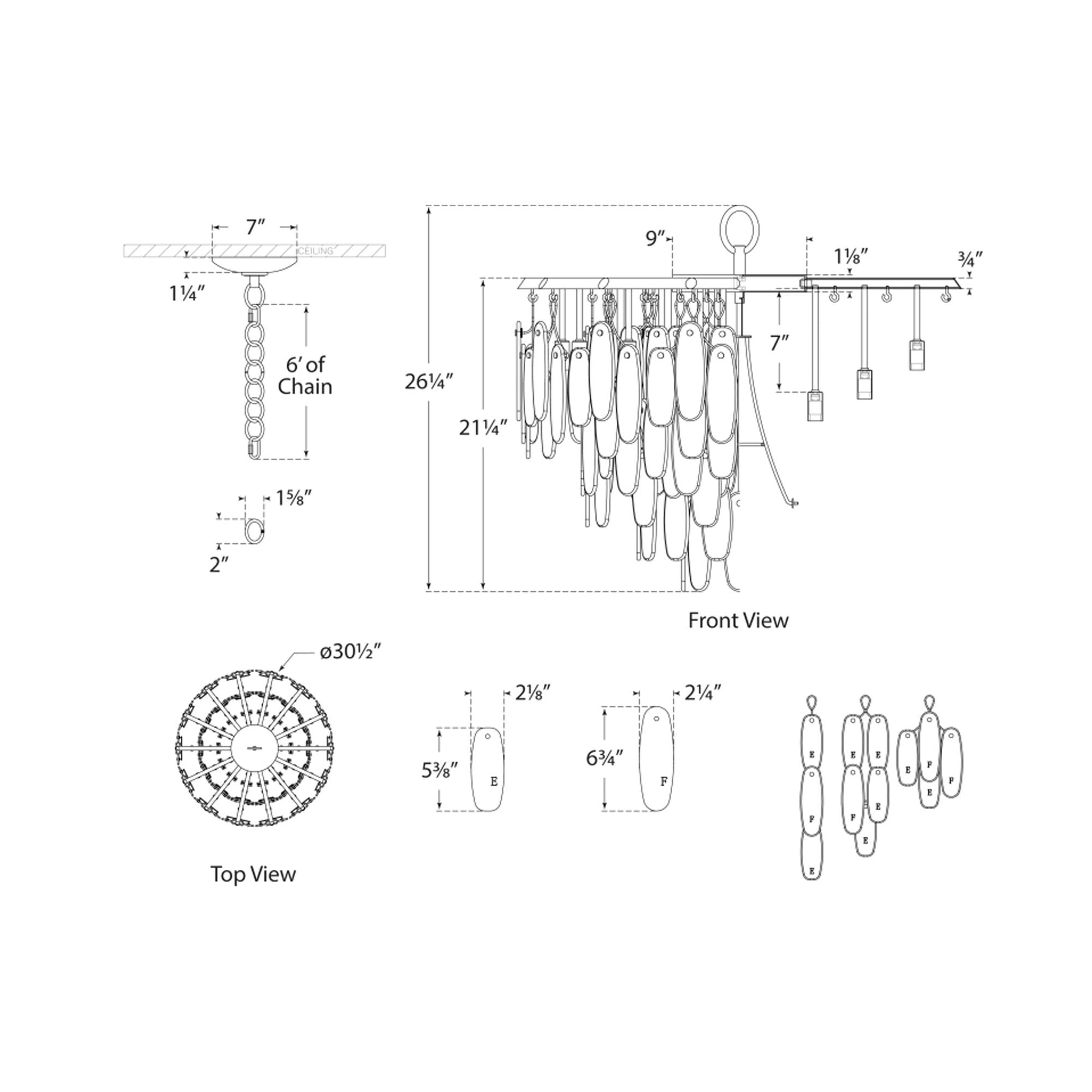 - Large/Short: 18 X 3.5W 120V E12(candelabra base) Type B LED lamps (not included)