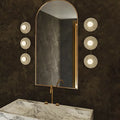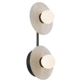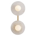 A vibrant plant-themed sculpture transmits elegance that brightens vanities and other wall spaces through the Dahlia Vanity Light by Alora Lighting. A fabulous design by Alan Pepin, it uses a smooth metal structure to support ribbed alabaster plates around damp-listed LED lamping, diffusing the strong light into a soft organic glow through rounded opal glass pearls. With distinct variations in the natural stone, no two sconces look alike but still manage to coordinate. Thoughtfully forged details elevate this floral fixture with layered illumination, casting a warm ambiance across its coordinated textures.