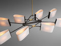 The Dessay Linear Chandelier is machined from solid brass. All parts are hand polished and patina’d. The shades are made from ivory silk.