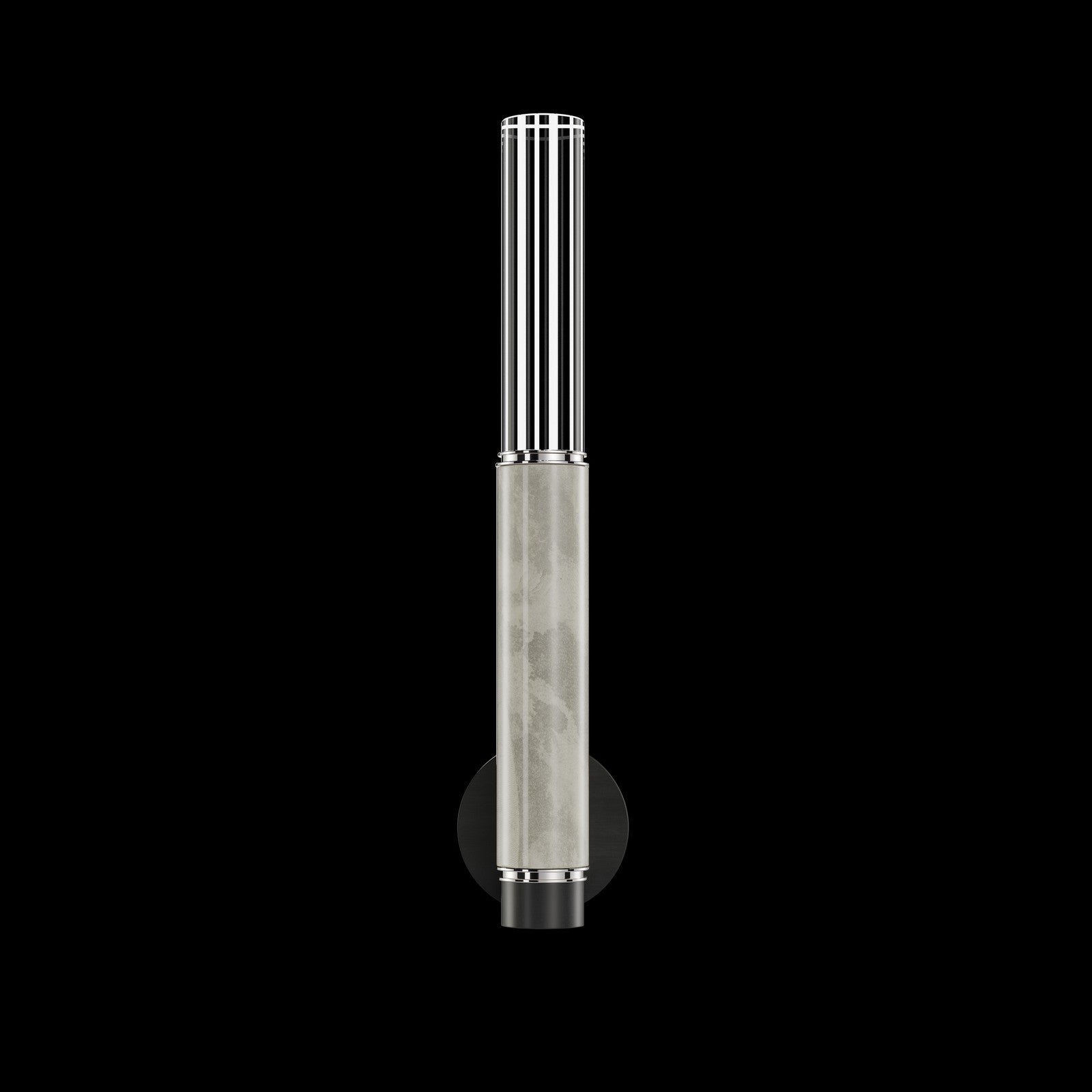 LED sconce features straight tubular lines and the inclusion of metals carefully handcrafted to transition from parchment to magnificent glass, culminating in a stunning beam of light. Available in a wide range of exquisite finishes, including our five standard finishes and our newest Soft Ombre Bronze & Soft Ombre Silver, with the choice of two inline parchment colors, Charcoal and Smoke, and three special order options: Mink, Burnt Orange & Navy/Gold. Also available with no parchment.