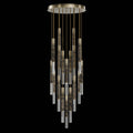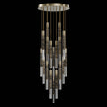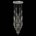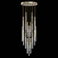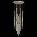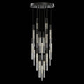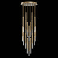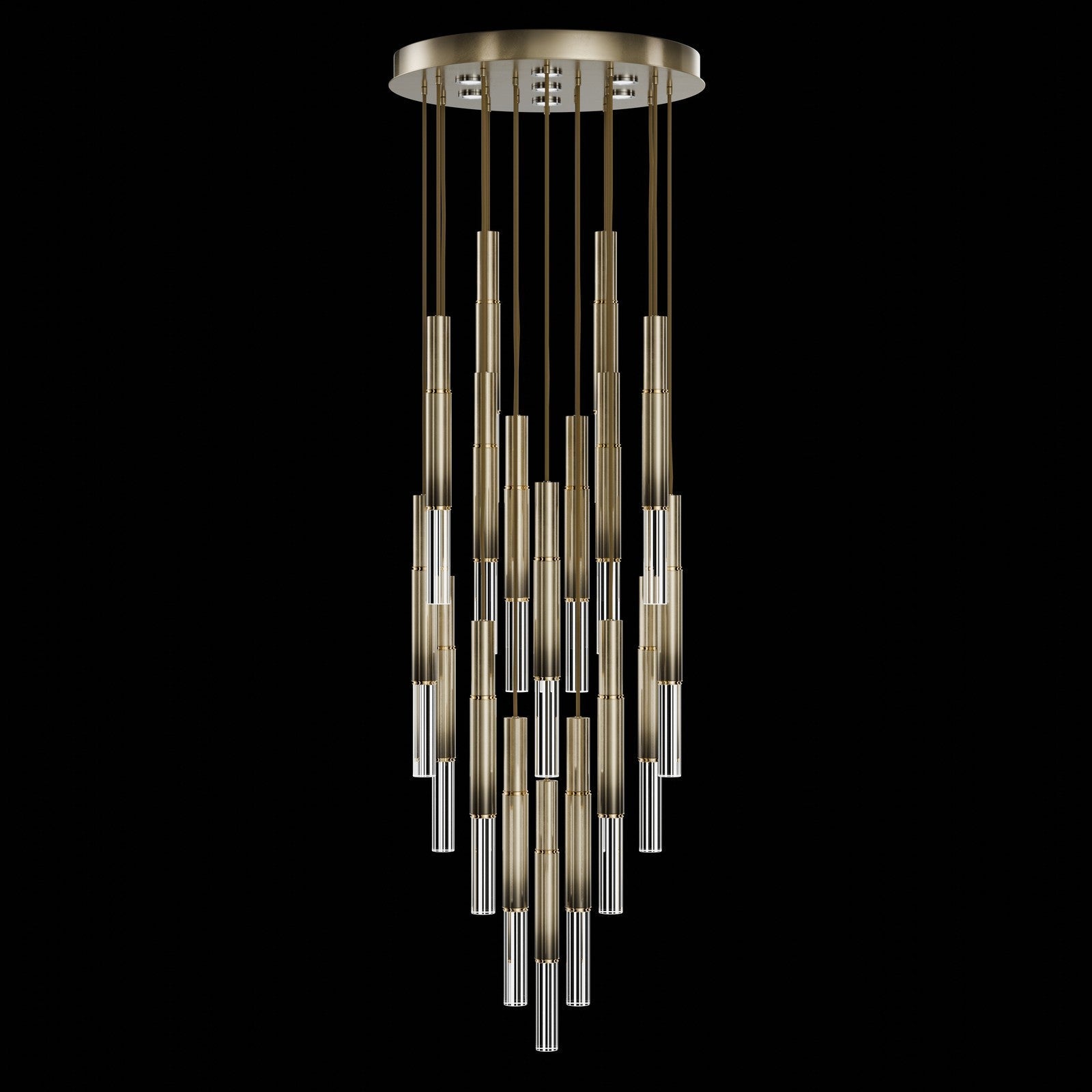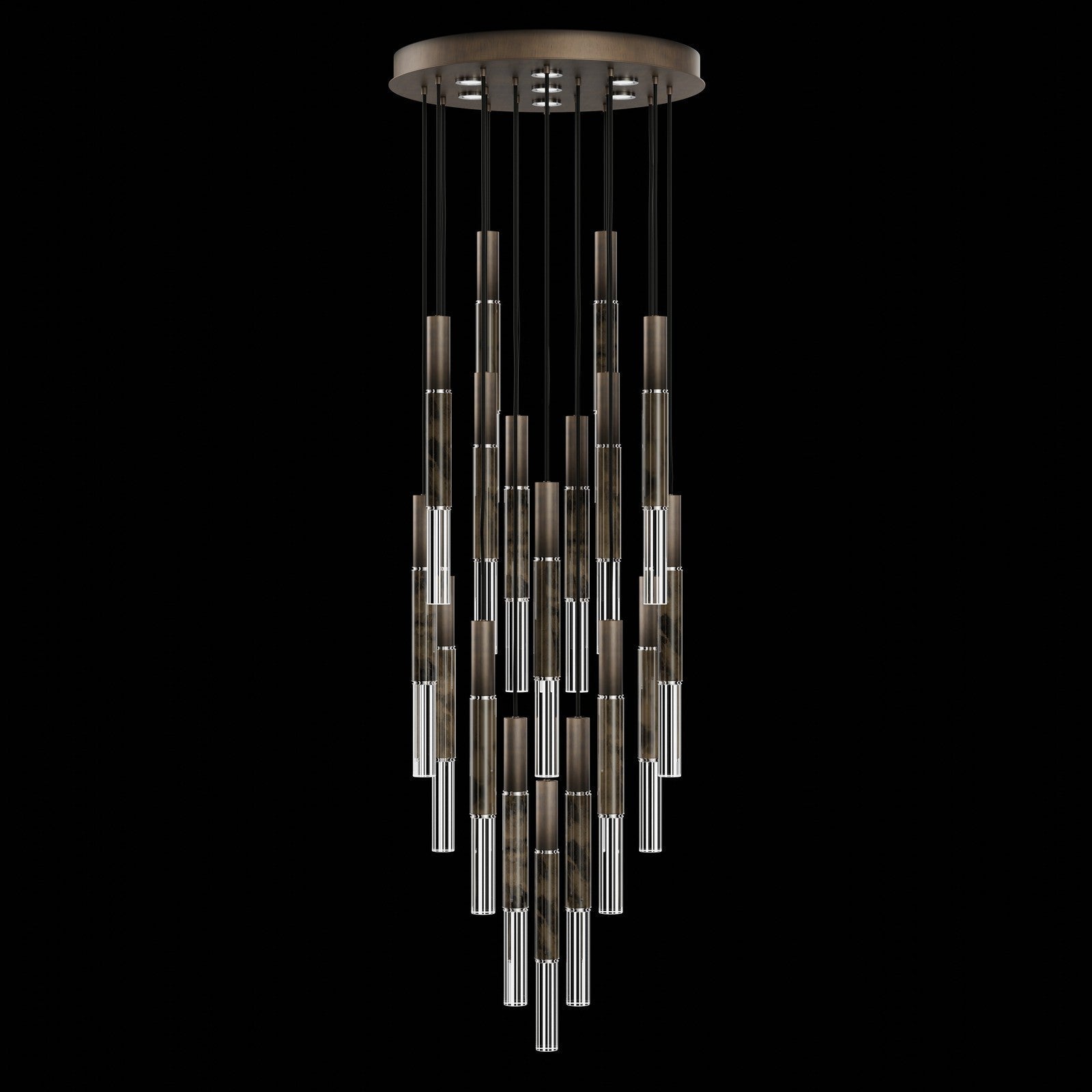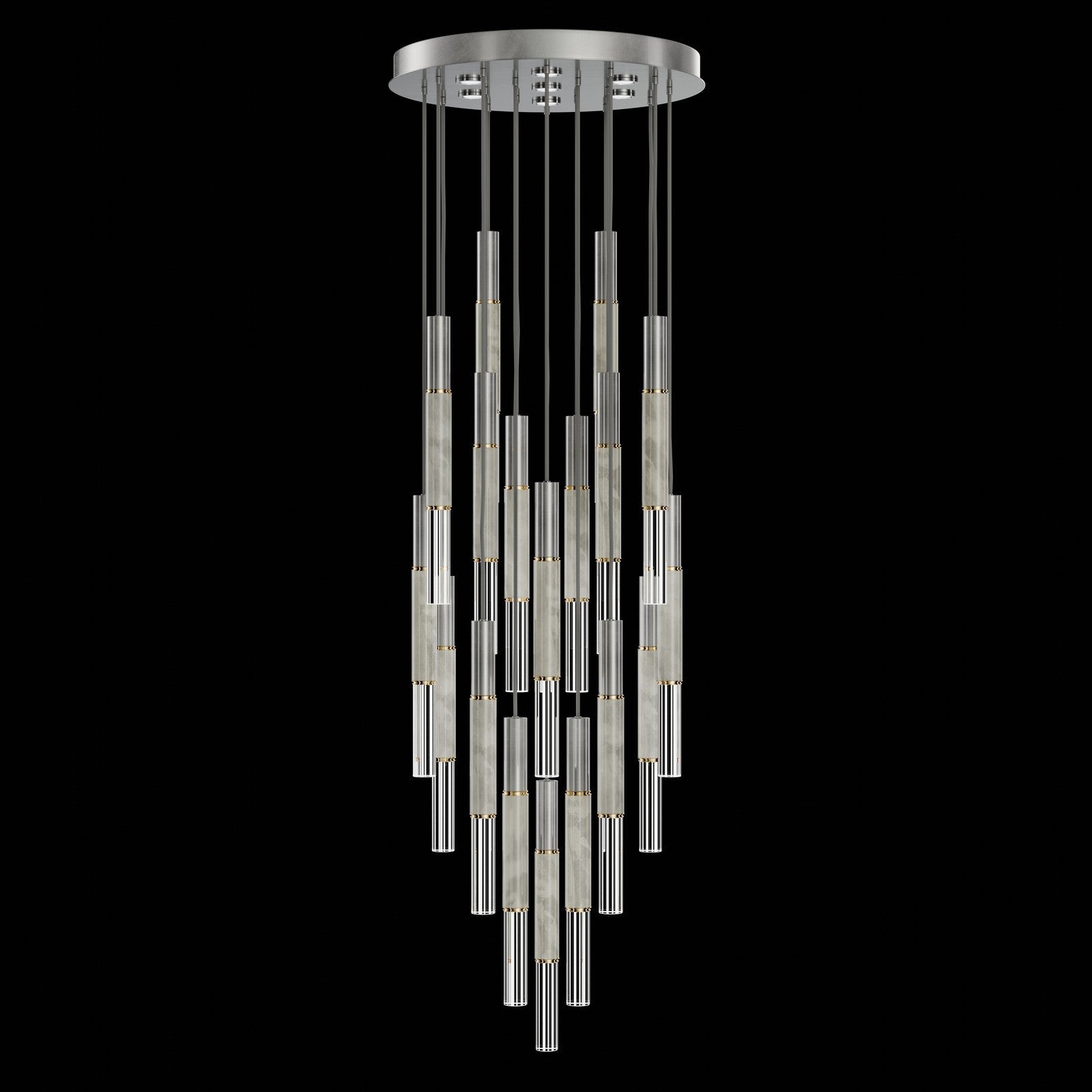 Suspended by adjustable cords, this LED fixture features straight tubular lines and the inclusion of metals carefully handcrafted to transition from parchment to magnificent glass, culminating in a stunning beam of light. Available in a wide range of exquisite finishes, including our five standard finishes and our newest Soft Ombre Bronze & Soft Ombre Silver, with the choice of two inline parchment colors, Charcoal and Smoke, and three special order options: Mink, Burnt Orange & Navy/Gold. Also available with no parchment. Upper & lower lights can be wired independently for single or dual light control.