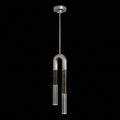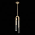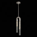 Single drop pendant featuring soft curves and the inclusion of metals carefully handcrafted to transition from parchment to magnificent glass, culminating in a stunning beam of light. Suspended by connectable rod segments for a customizable length. Also available with no parchment.