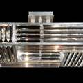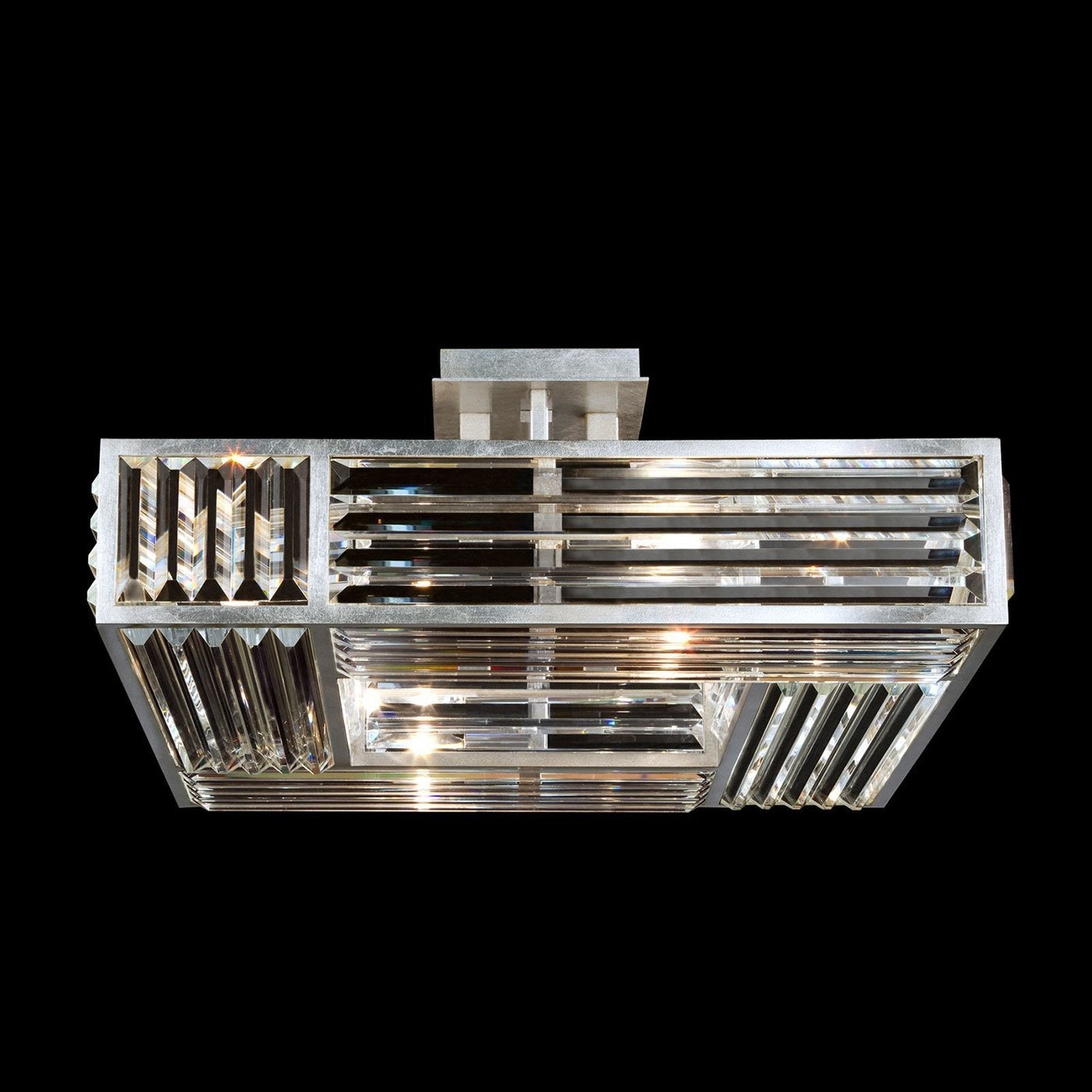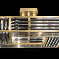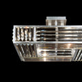 Chandelier in a modern design of multi-faceted crystal panels, set in metal frames that refract light and create an enchanting aura highlighting appointments and transforming a space with extraordinary effect. Available in Silver and Gold finish.