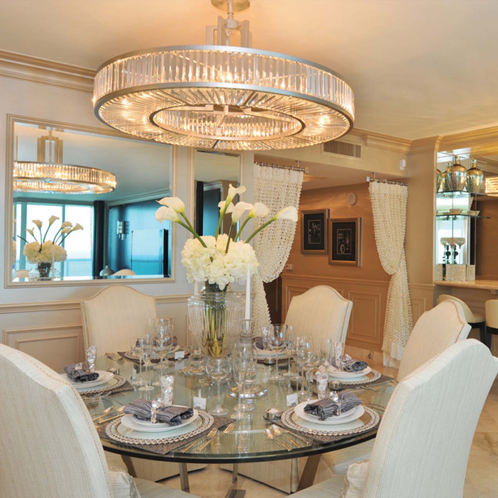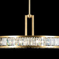 Chandelier in a modern design of multi-faceted crystal panels, set in metal frames that refract light and create an enchanting aura highlighting appointments and transforming a space with extraordinary effect. Available in Silver and Gold finish.