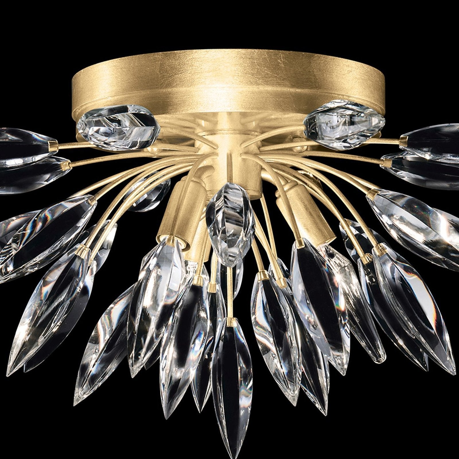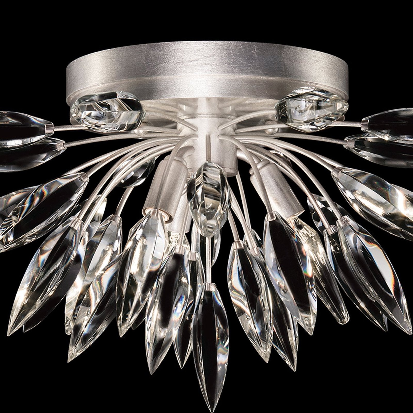 Flush mount with graceful bouquets of faceted crystal lily buds that create a naturally elegant lighting effect. Available in Gold and Silver finish.