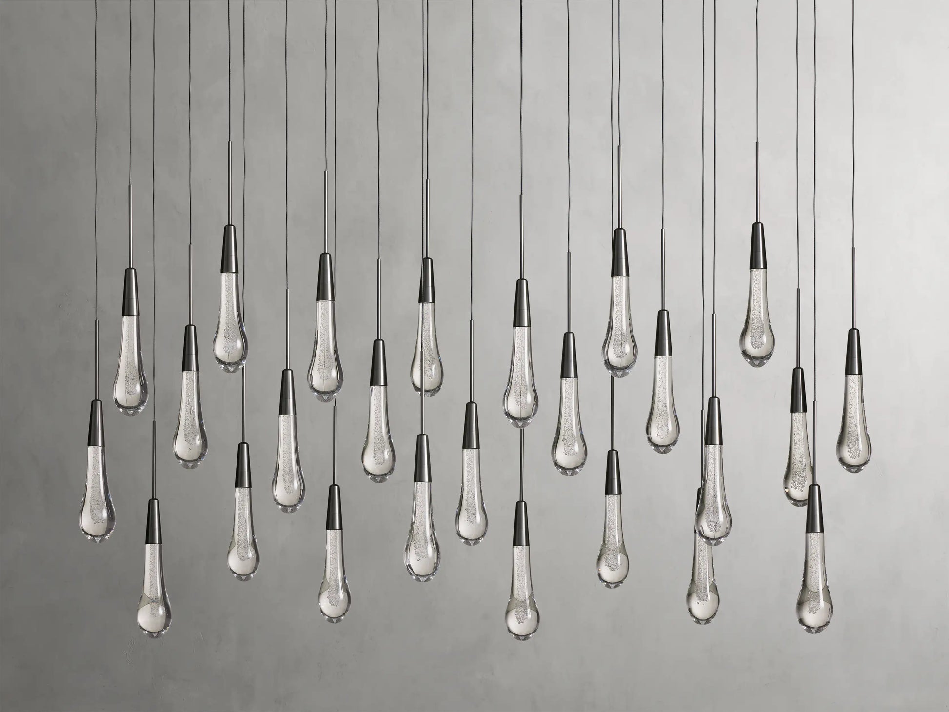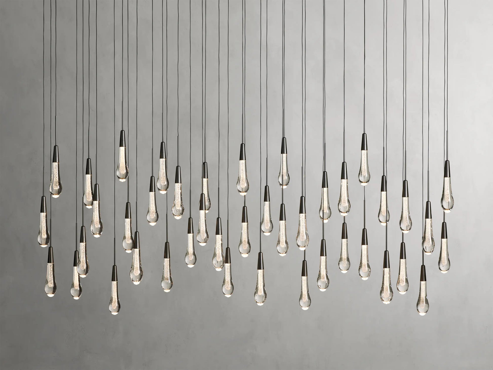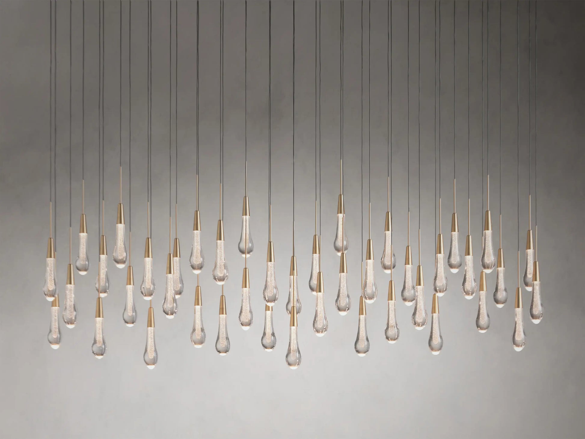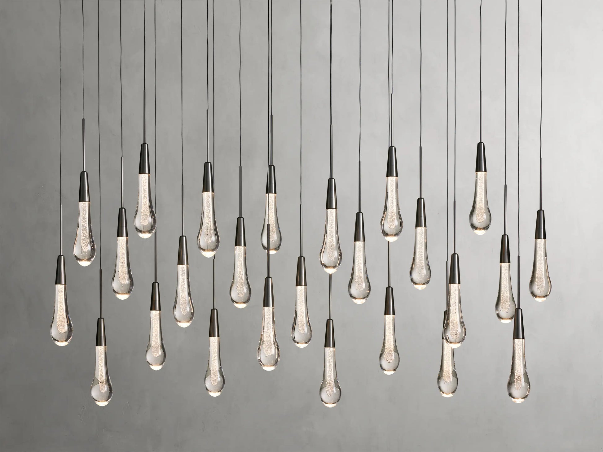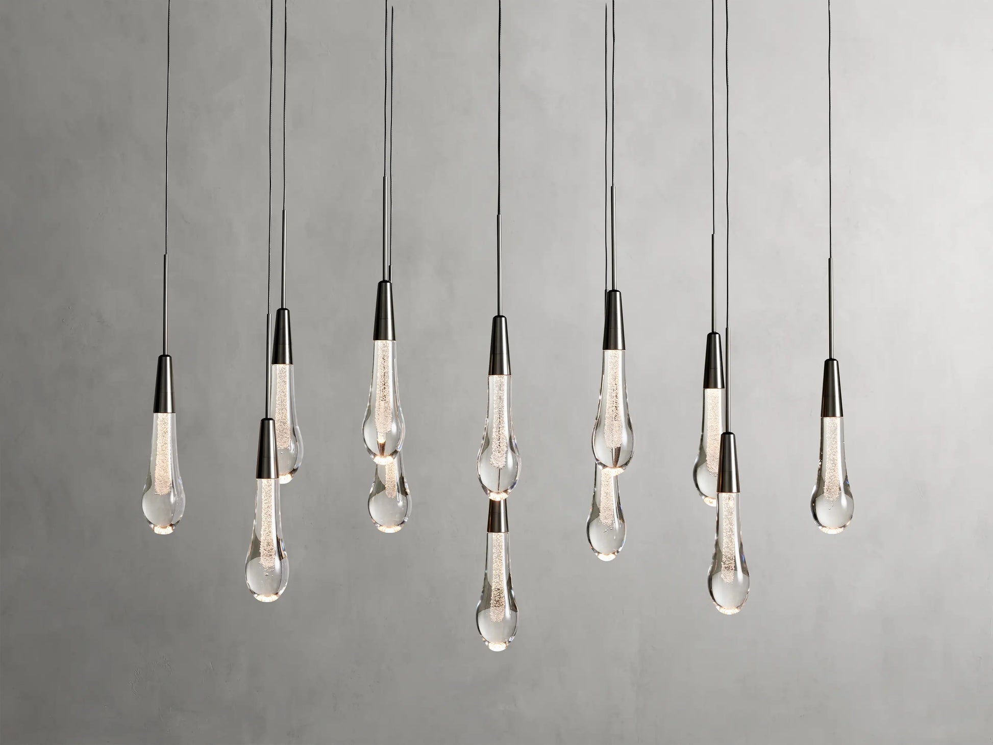 Featuring adjustable black PVC cords cascading into integrated LED lights handcrafted from seeded glass, our Soratai Lighting Collection mimics the look of a fallen raindrop.