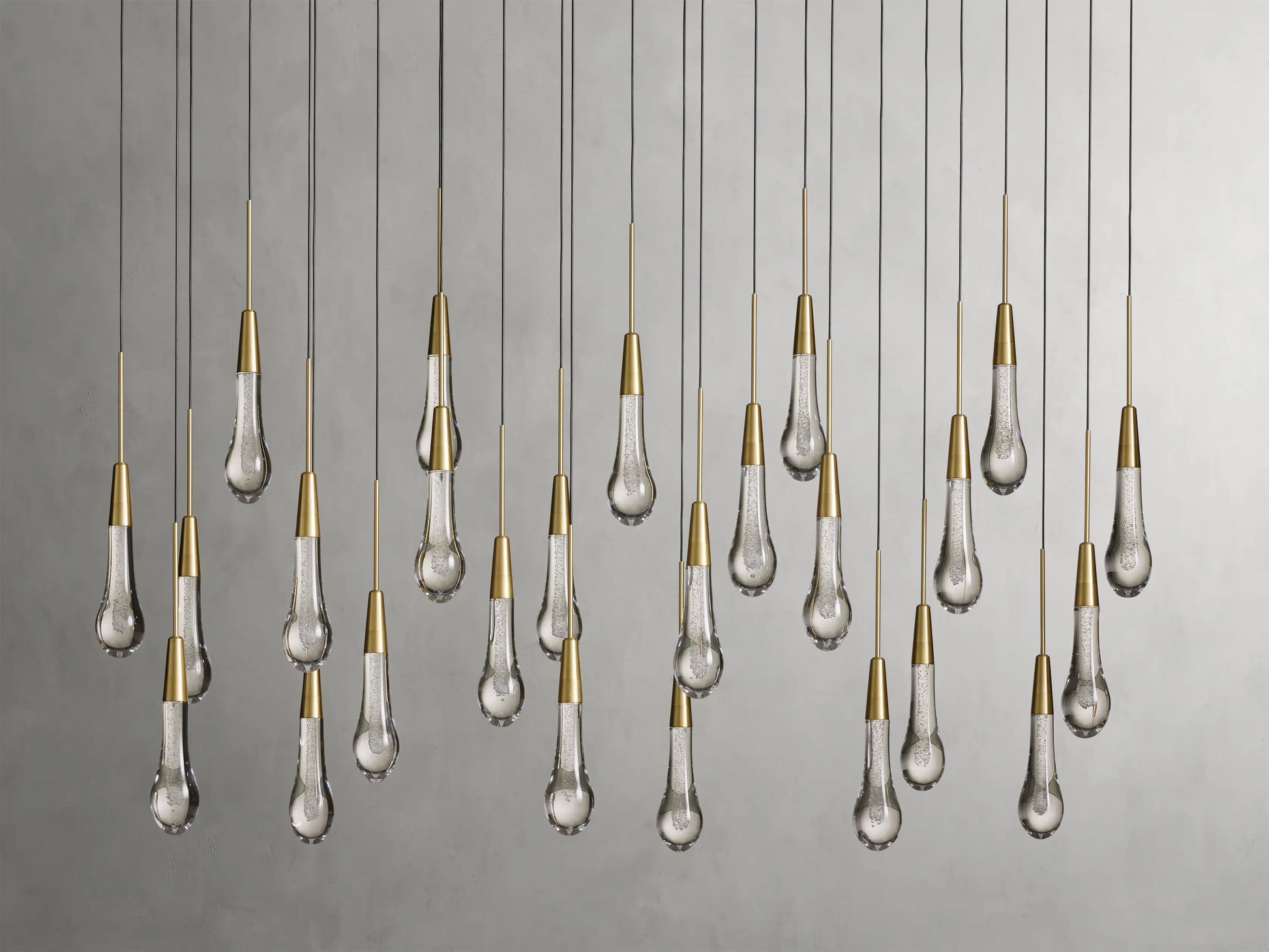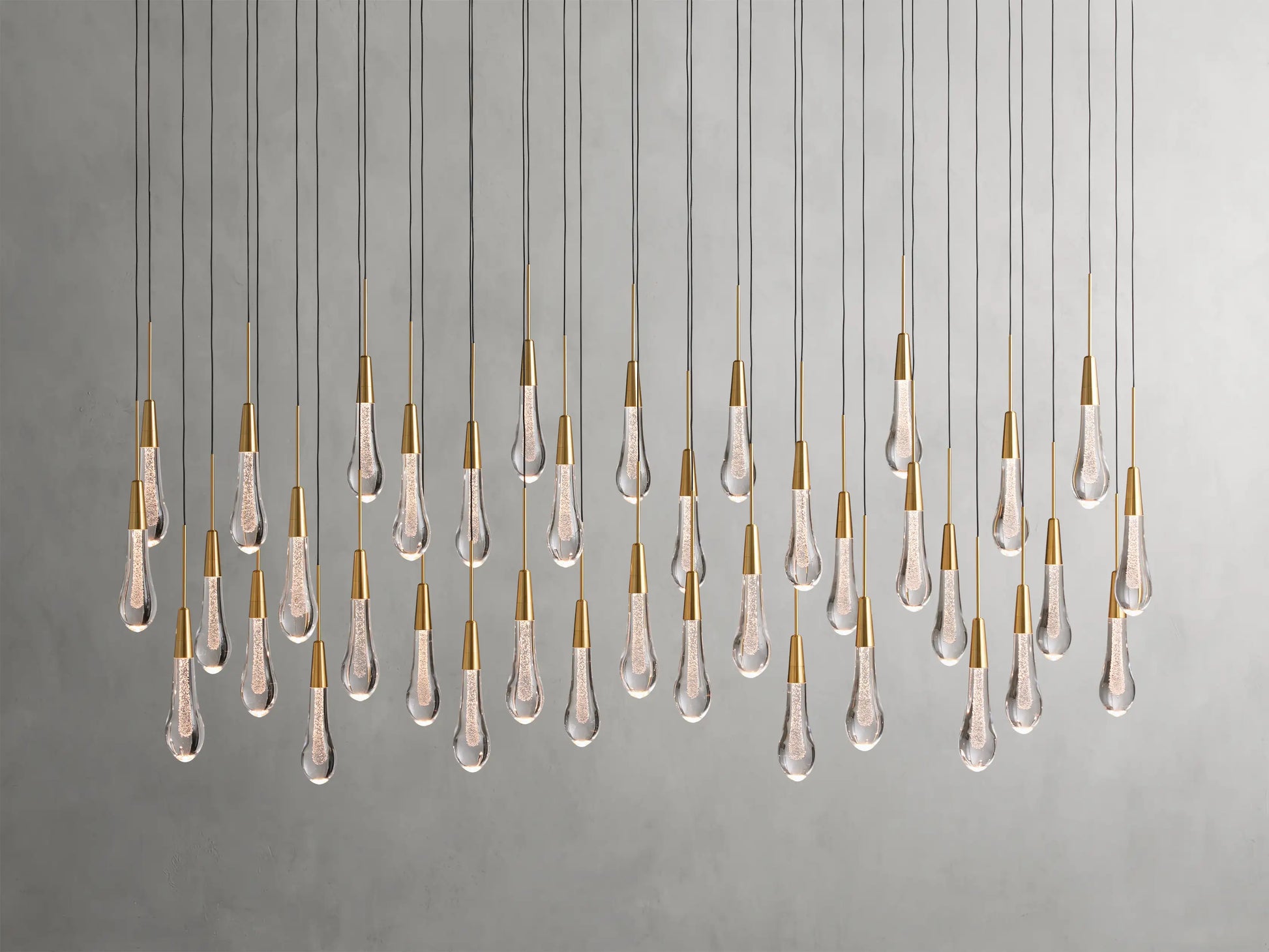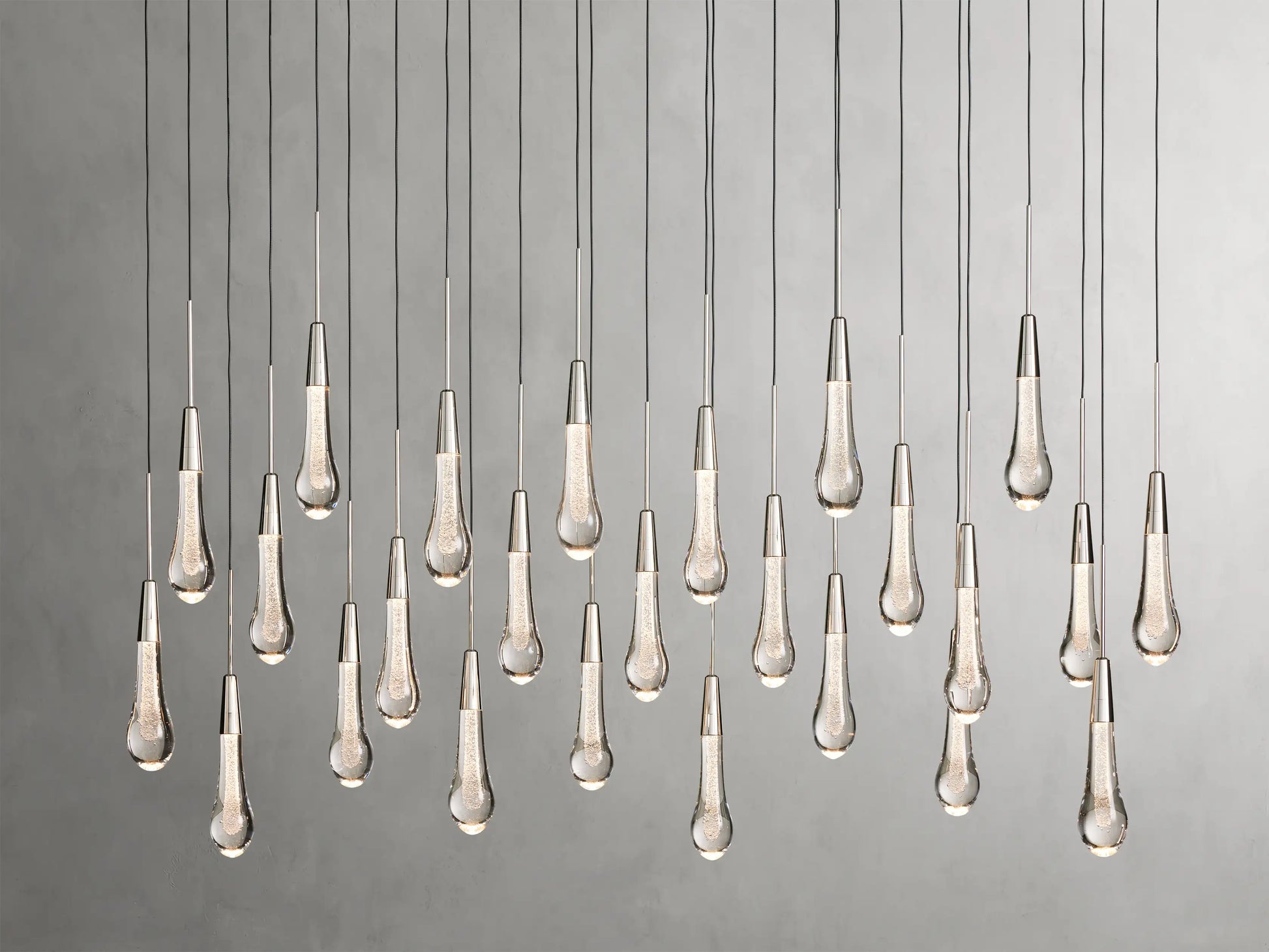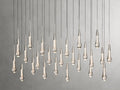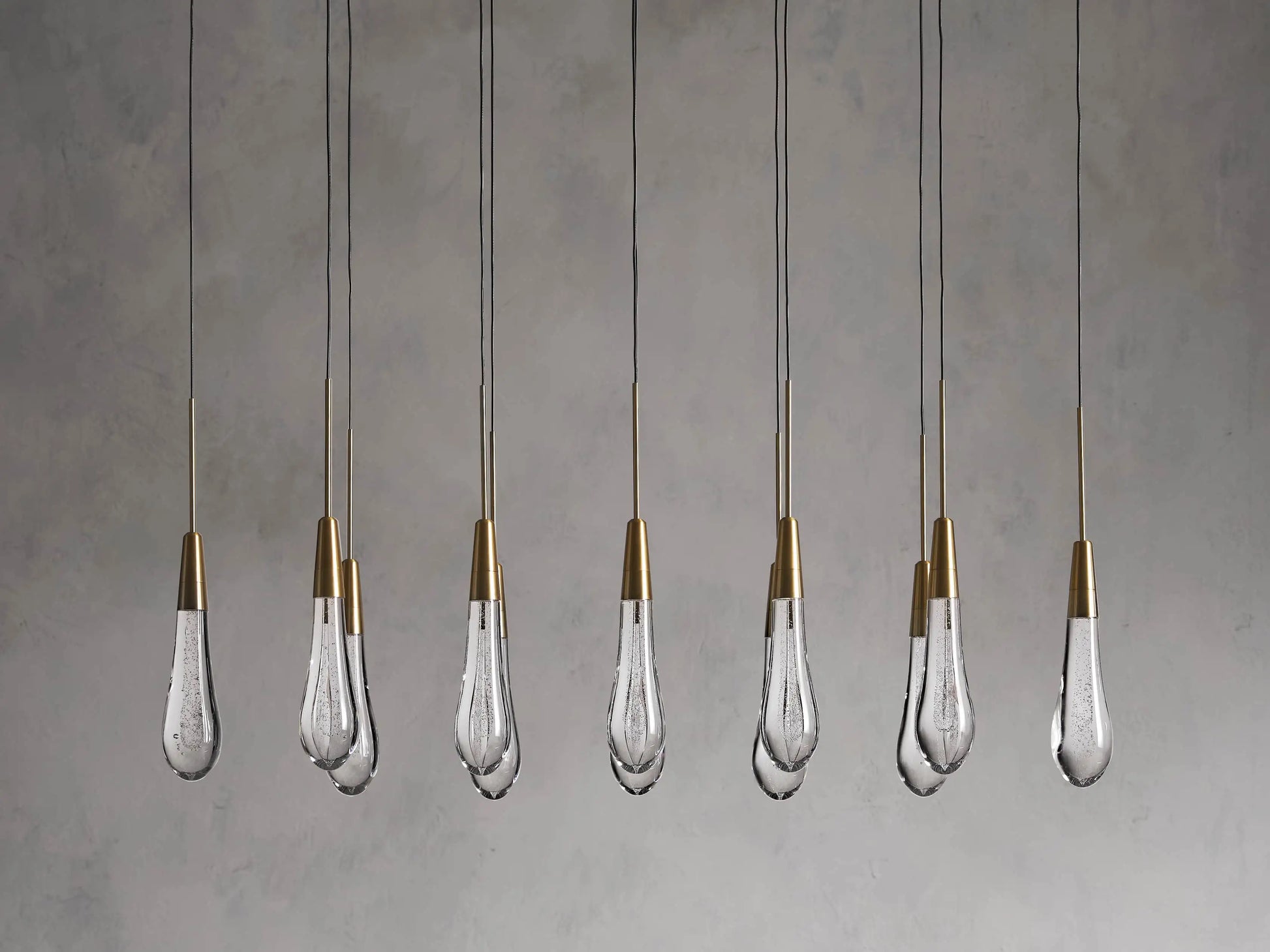 Featuring adjustable black PVC cords cascading into integrated LED lights handcrafted from seeded glass, our Soratai Lighting Collection mimics the look of a fallen raindrop.