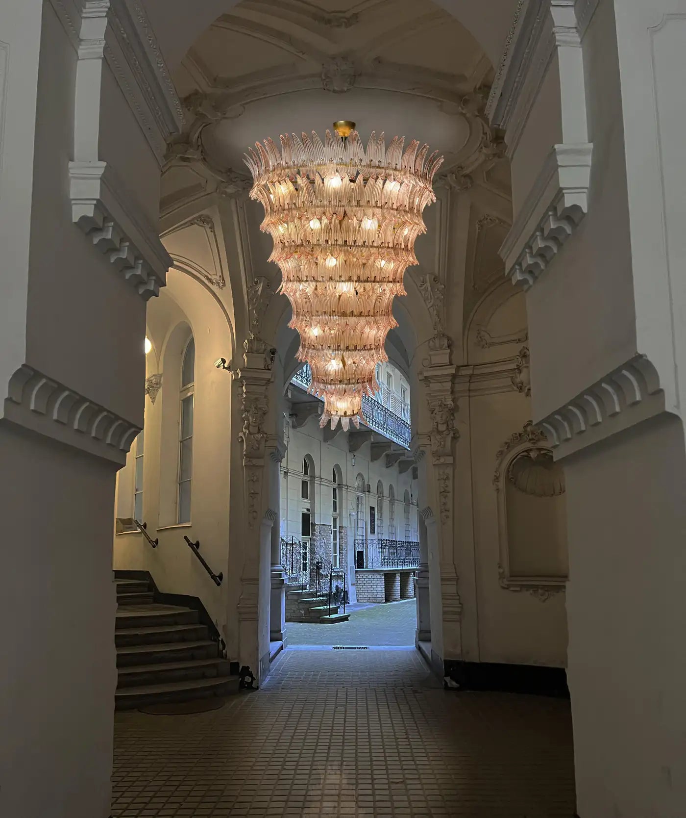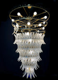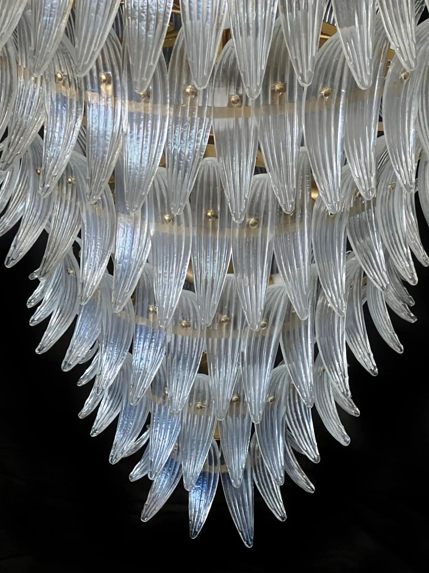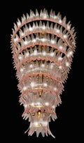 Majestic "palmette" chandelier made by Murano make 330 Pink color glasses. Structure in gold colored metal.