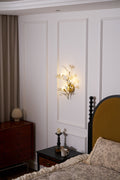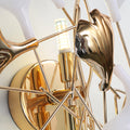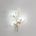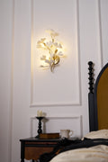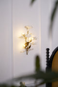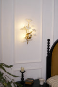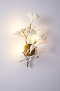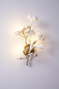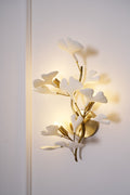 This particular ginkgo leaf-shaped wall lamp is an absolute eye-catcher in your interior! The wall lamp is made of a shiny gold+white finish that radiates warmth and elegance. Mid Century Sconce is strikingly distributed throughout the wall. Even when turned off, this sculptural lamp is a gorgeous piece of jewelry on the wall. It's a striking alternative to a painting, tapestry, or mirror.
