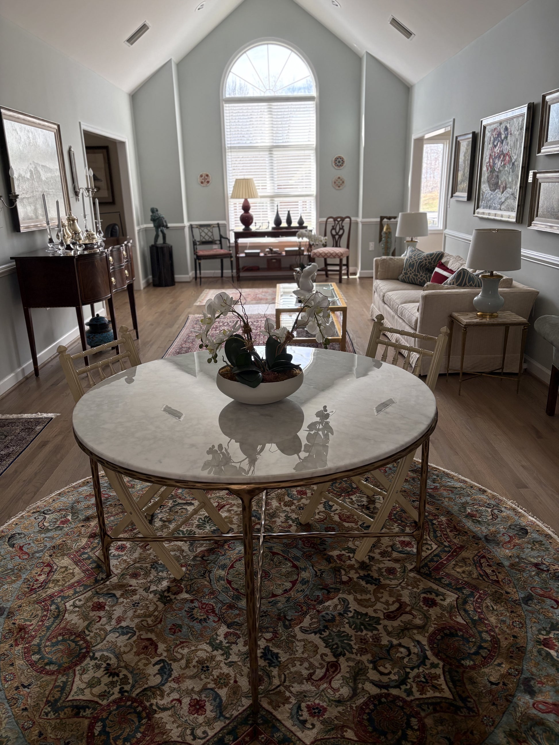 Hand-Forged Metal Marble Round Dining Table