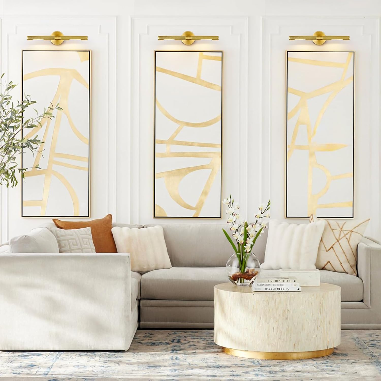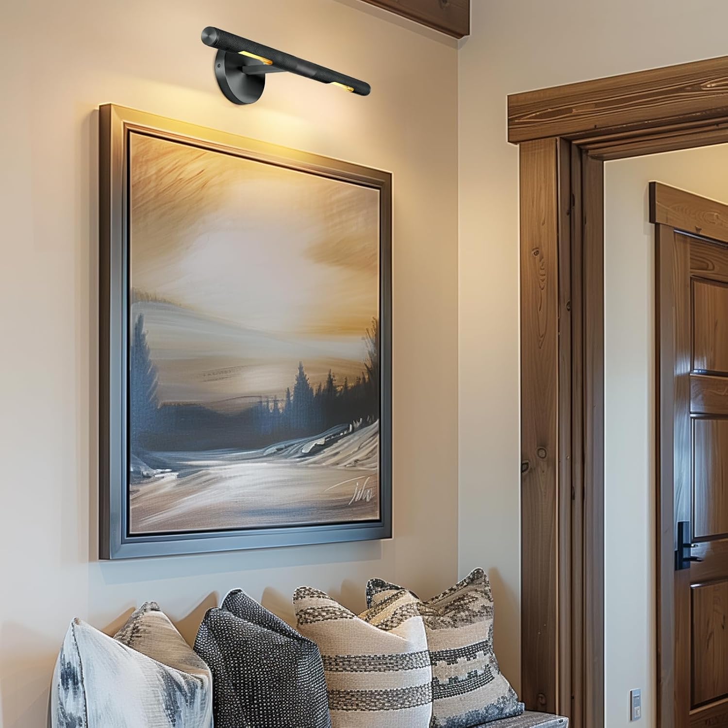Hard-wired Knurled Picture Light, which illuminate artwork in the optimal color spectrum. The picture lighting is crafted from solid brass, combines strength with elegant proportions. The surface of the art lights for wall has a detailed texture and exquisite workmanship. The two copper shades of the picture light can be rotated 360°, allowing you to adjust the wall picture light angle based on the position of the mural for optimal illumination