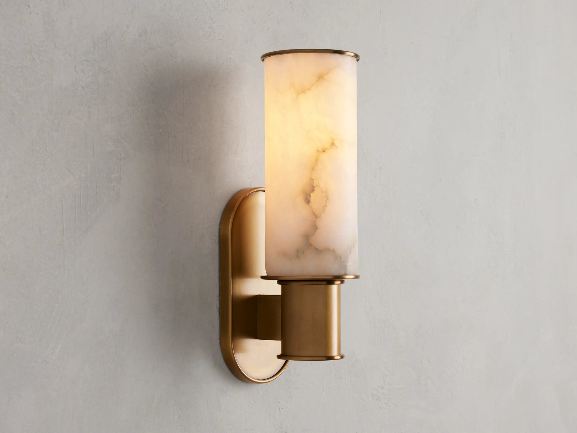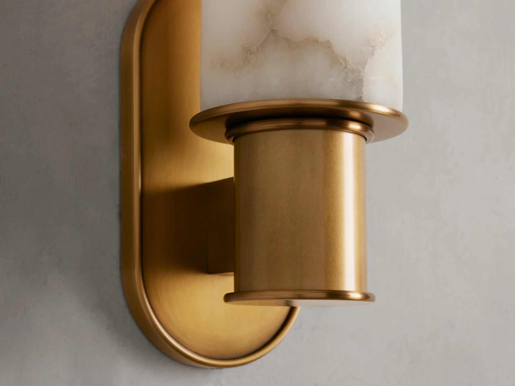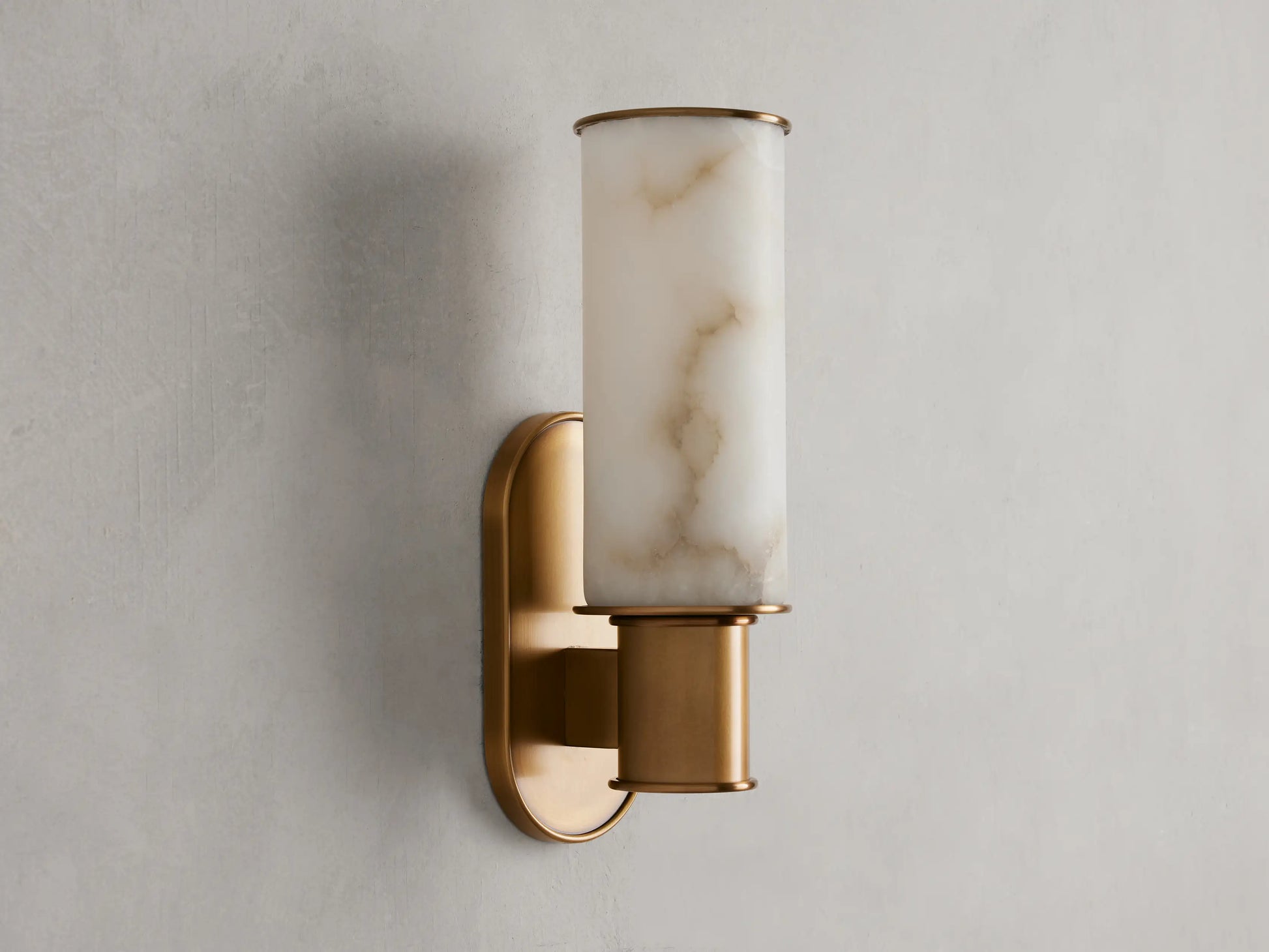 - Harlin is an Arhaus exclusive lighting collection crafted from steel and brass with a polished nickel, bronze plated, or burnished brass finish with an alabaster stone cloche to complement your bathroom aesthetic.