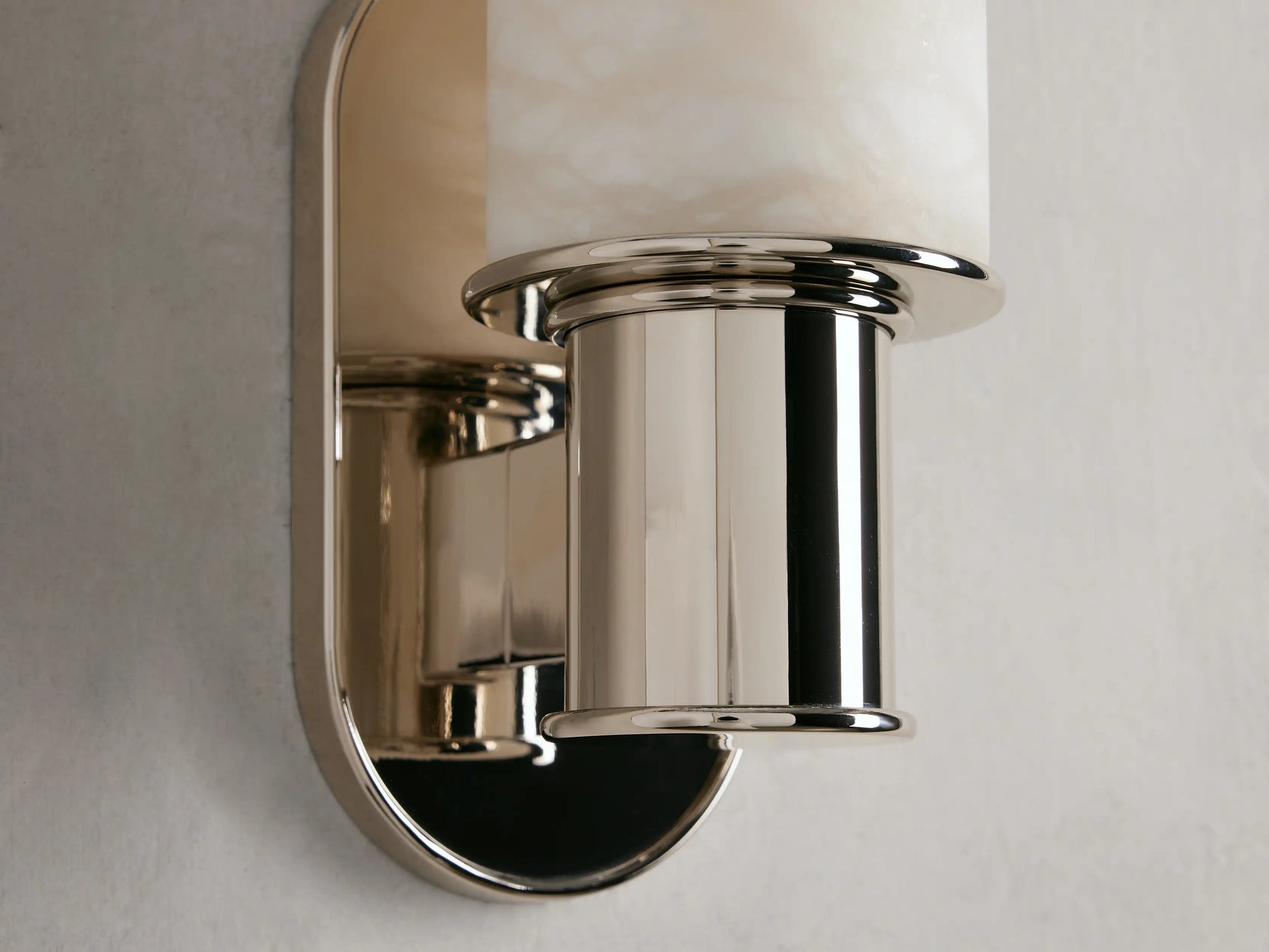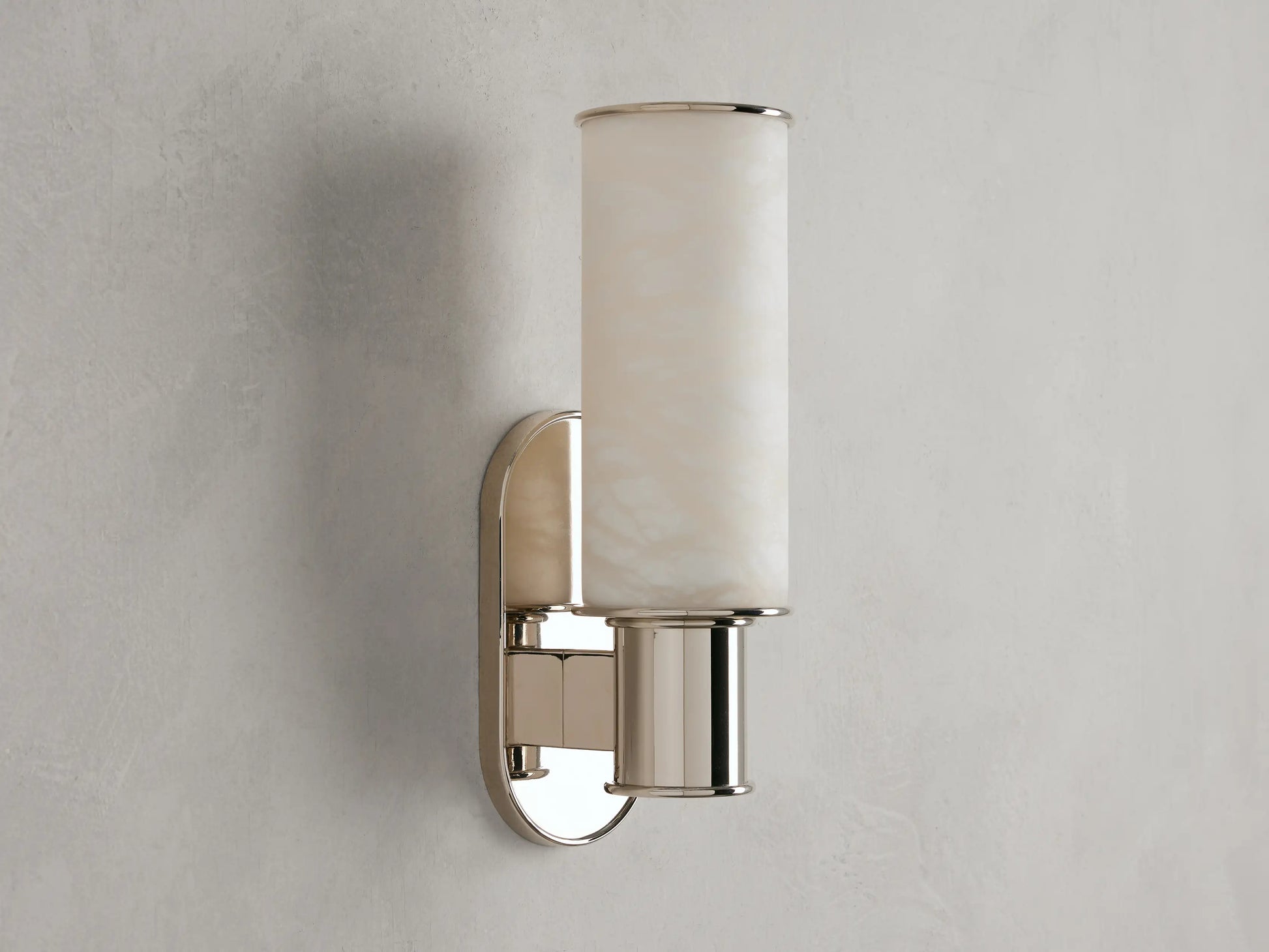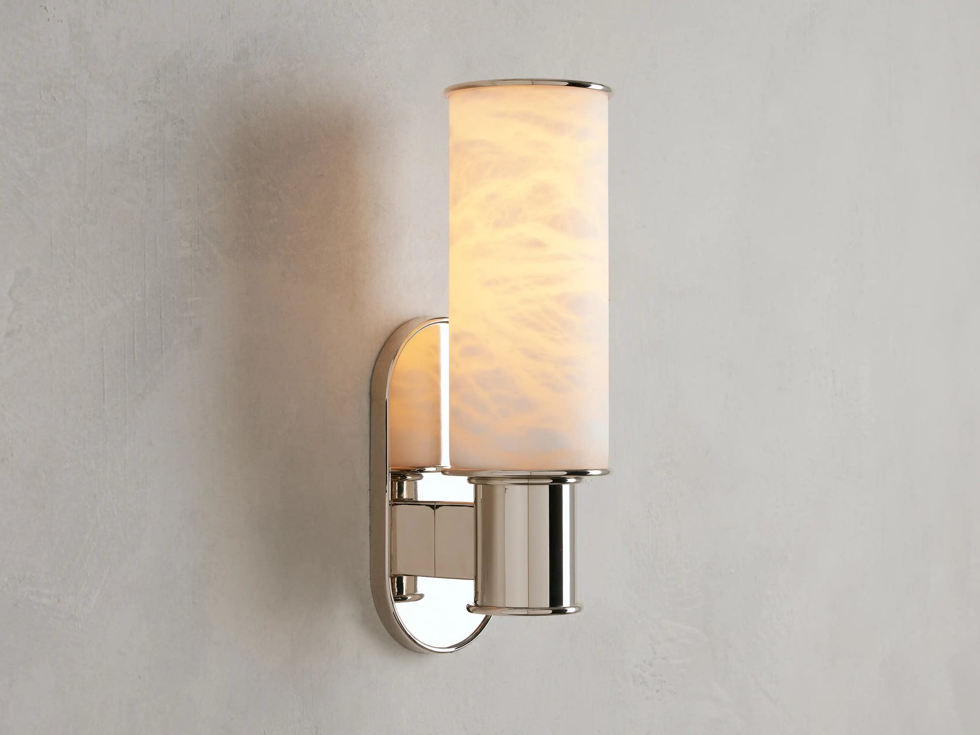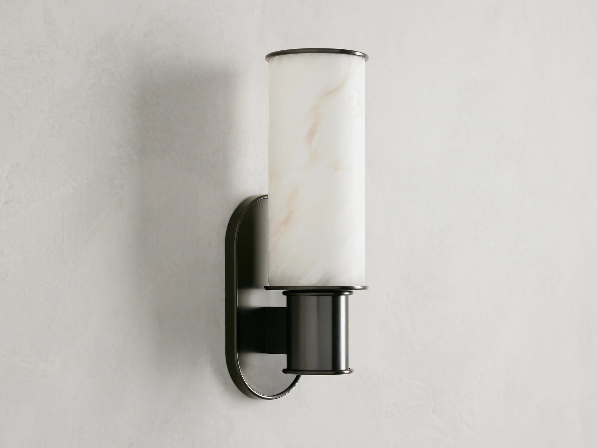 - Harlin is an Arhaus exclusive lighting collection crafted from steel and brass with a polished nickel, bronze plated, or burnished brass finish with an alabaster stone cloche to complement your bathroom aesthetic.