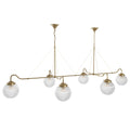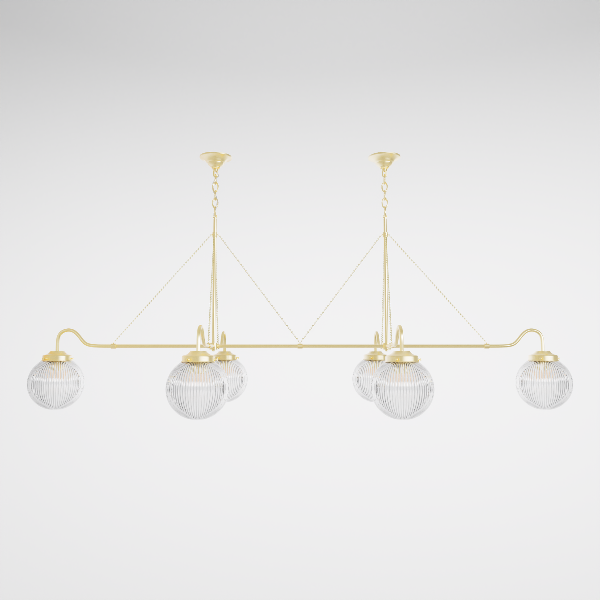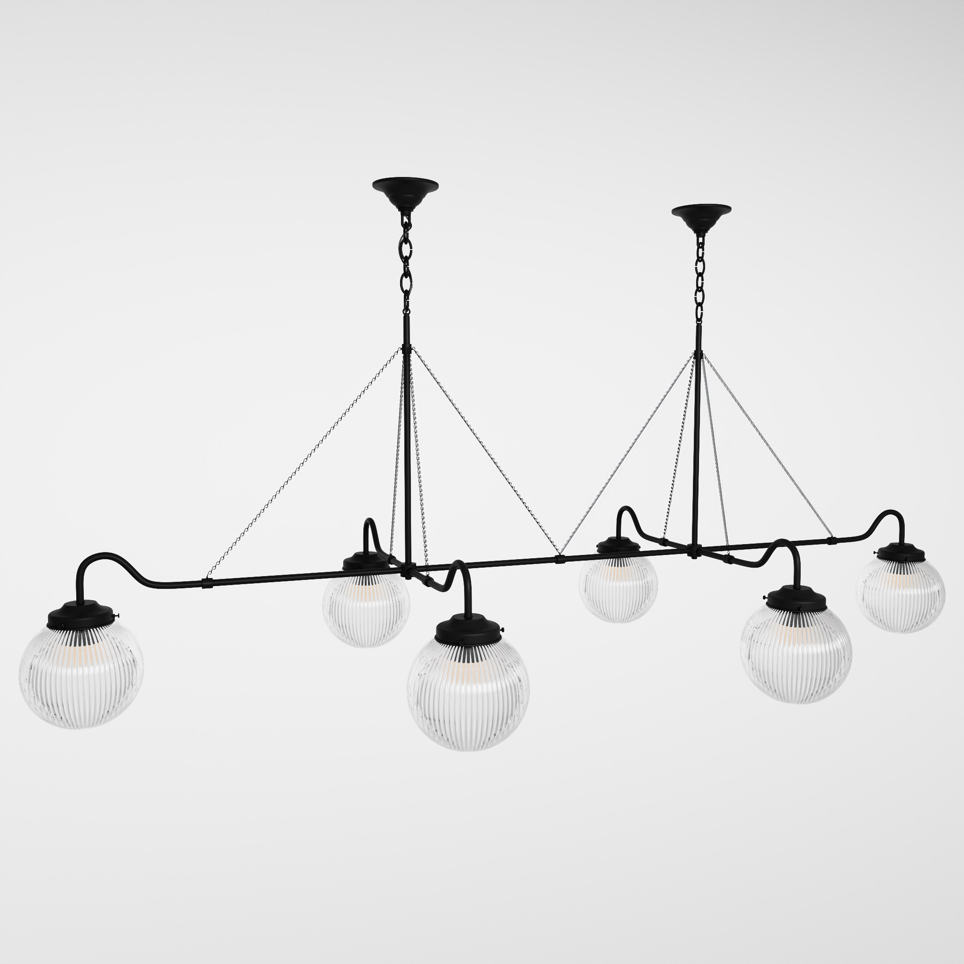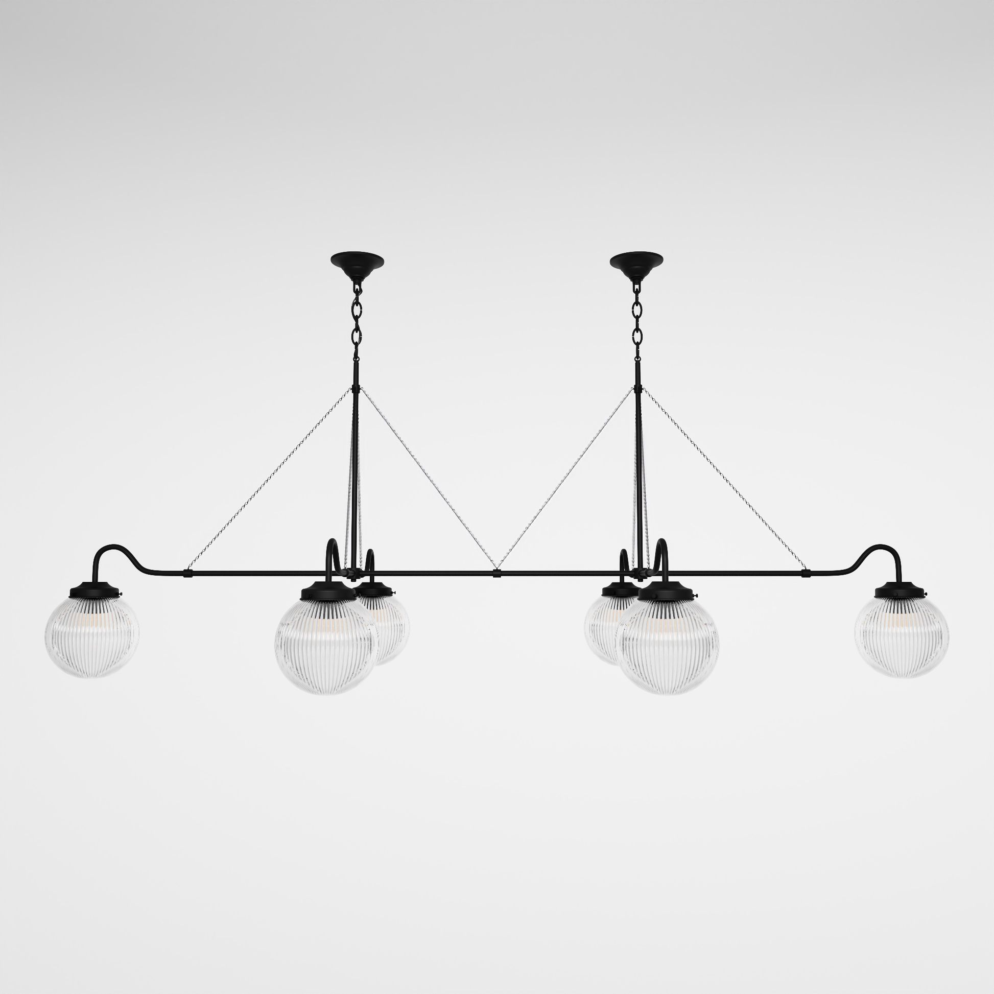 Inspired by the country side, the Hayden collection is built with solid brass that's hand finished. Each Hayden fixture arm features a thick ribbed glass globe secured by a house bent shepherd crook. We love this fixture in high ceiling rooms, above wide kitchen islands, over larger dining tables, and in game rooms.