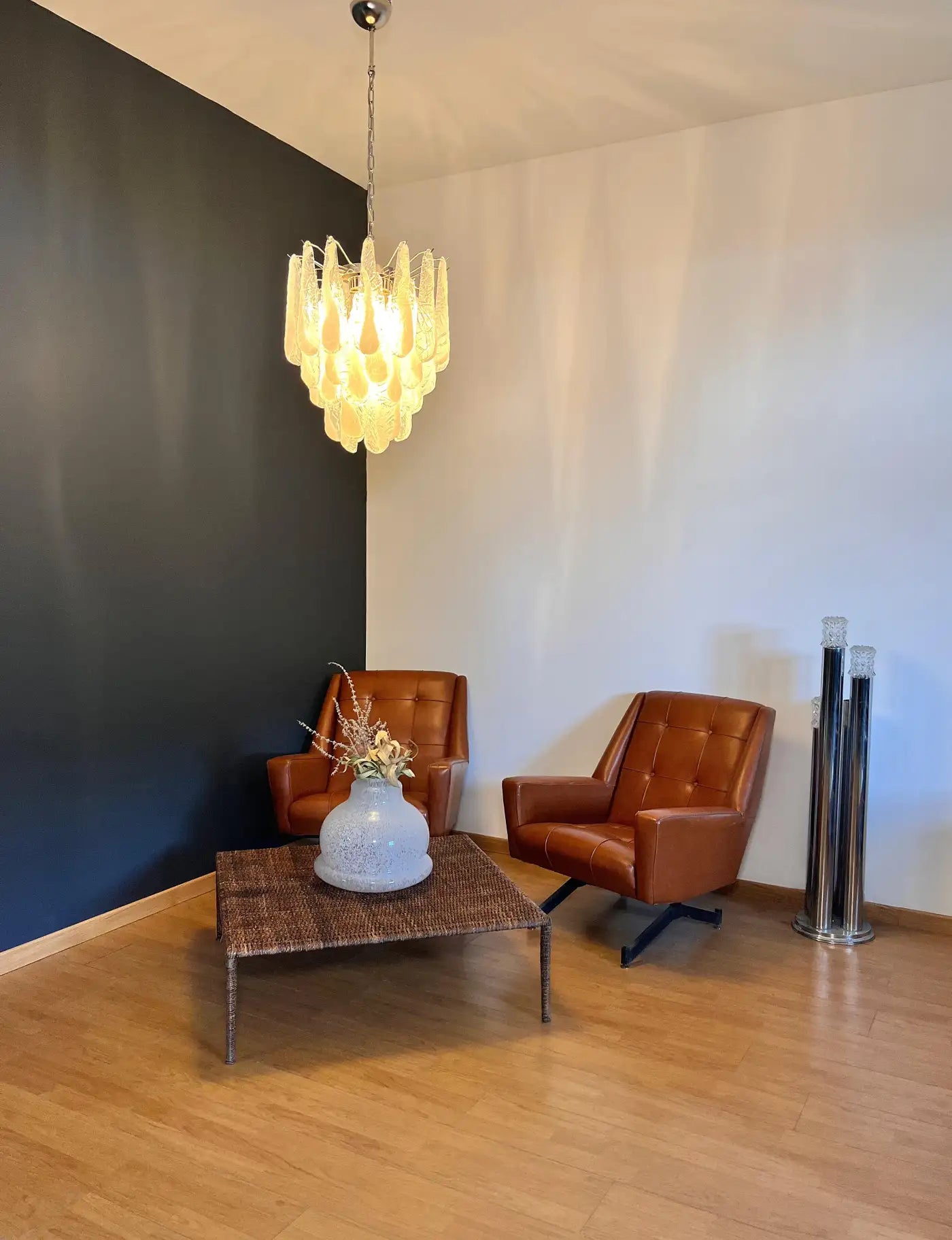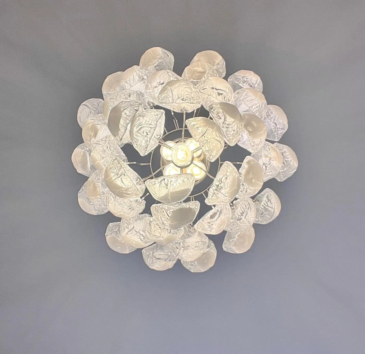 Italian Vintage Murano Chandelier 41 Glass lattimo Petals Drop