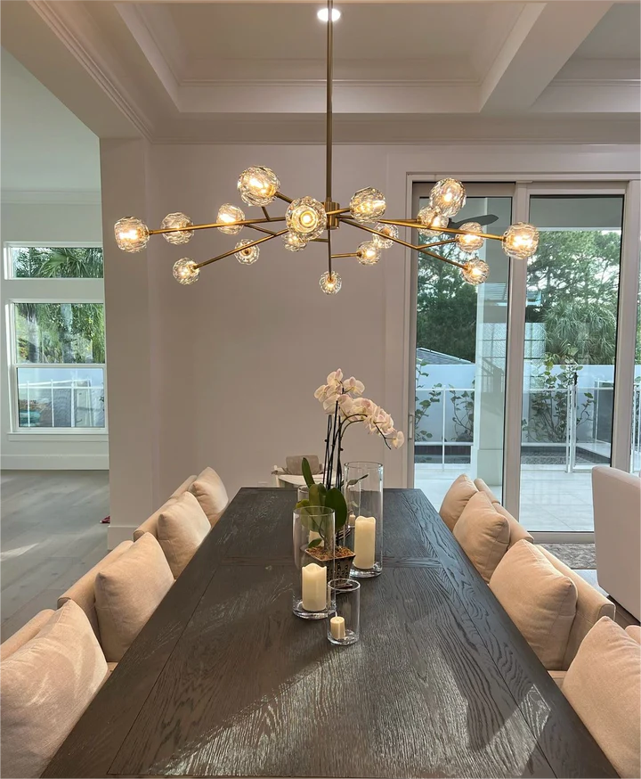 Crystal Ball Modern Clear Crystal Round Chandelier Over Dining Table