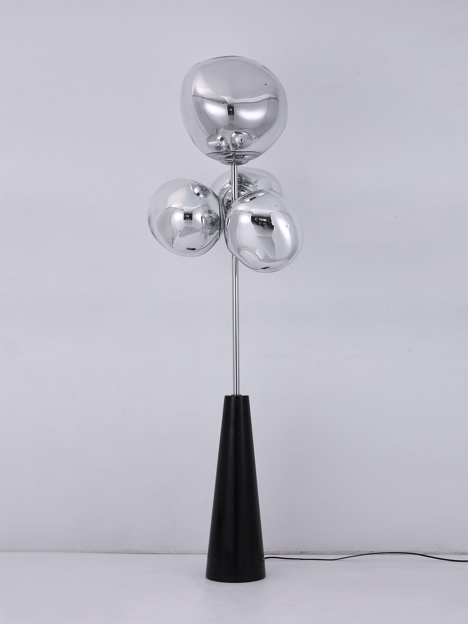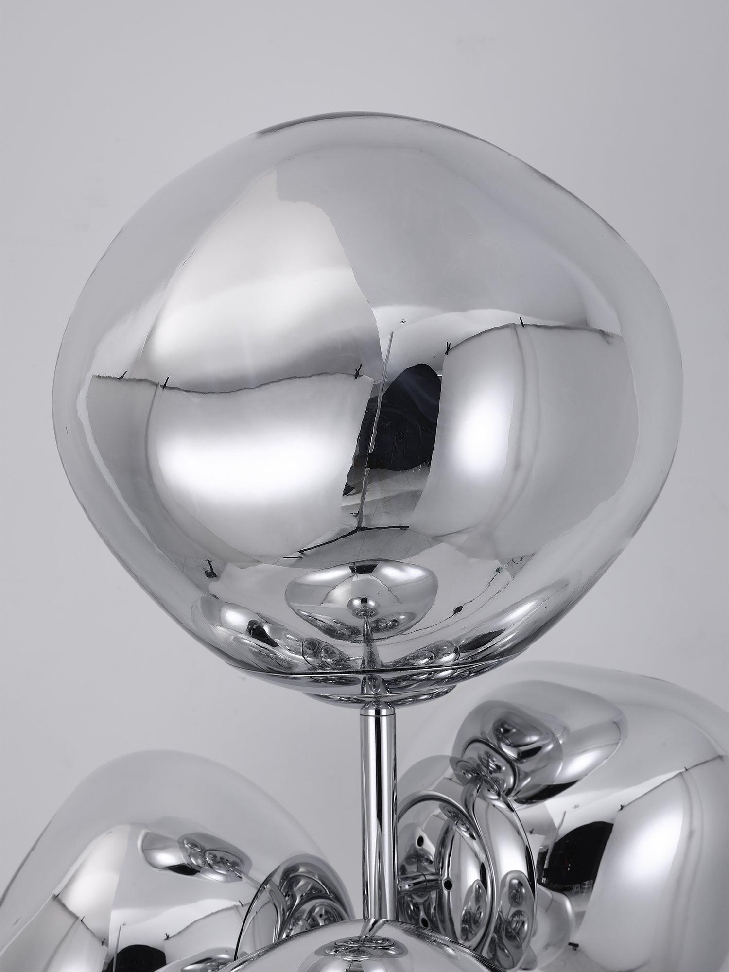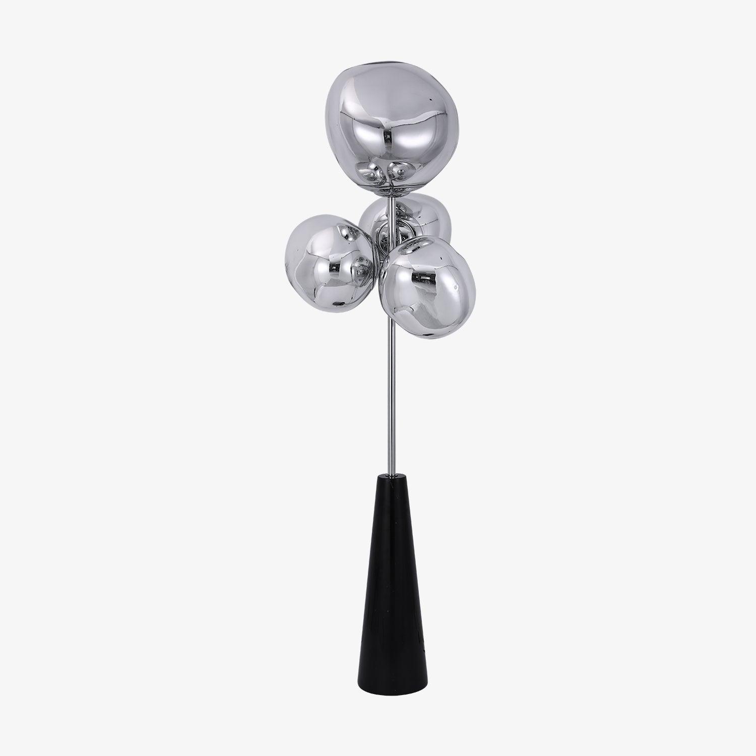 Translucent when on and mirror-finish when off, the Lava Column Floor Lamp is a beautifully distorted lighting globe that creates a mesmerizing melting hot-blown glass effect. The Melt lights are a series of distorted spherical pendants, half-metallized to create an extraordinary optic effect and cast an ethereal luminosity on their surroundings.