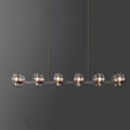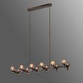 The Letitia Linear Crystal Chandelier is machined from solid brass. All parts are hand polished and patina'd. The lead crystal shades are carved and polished by hand.