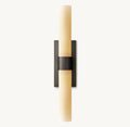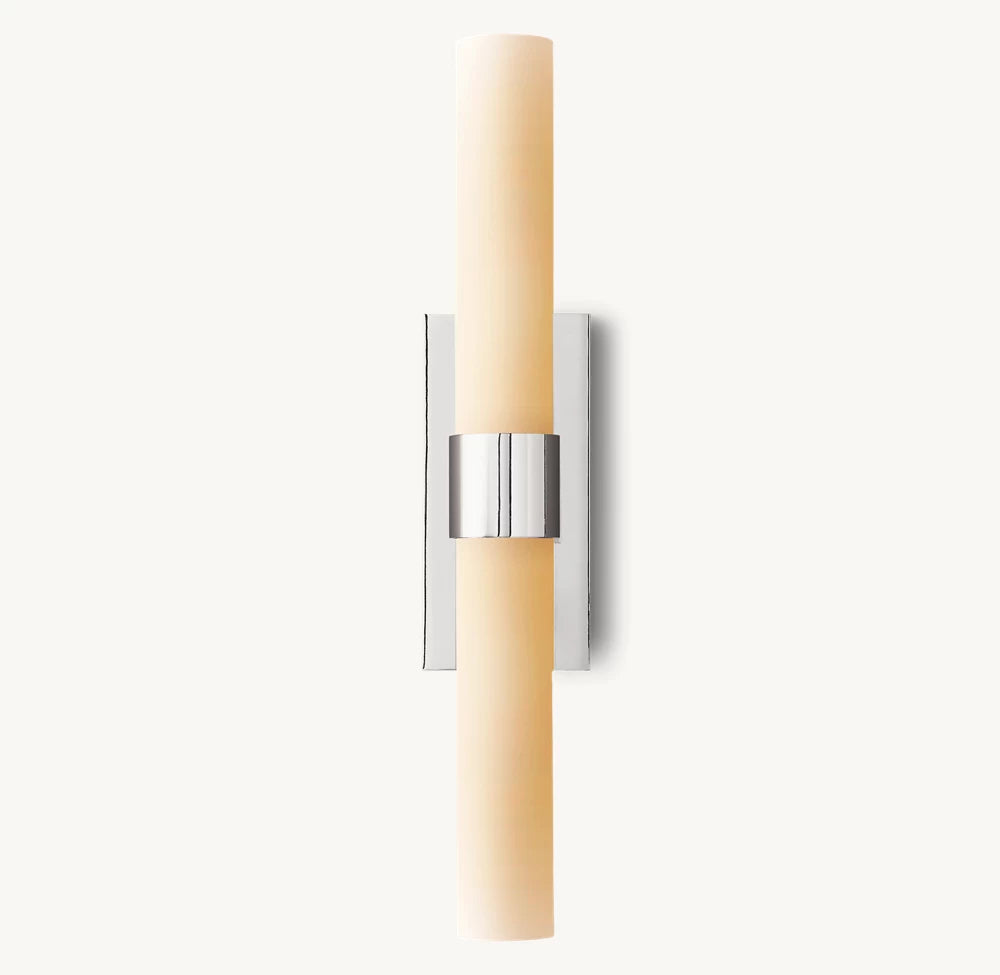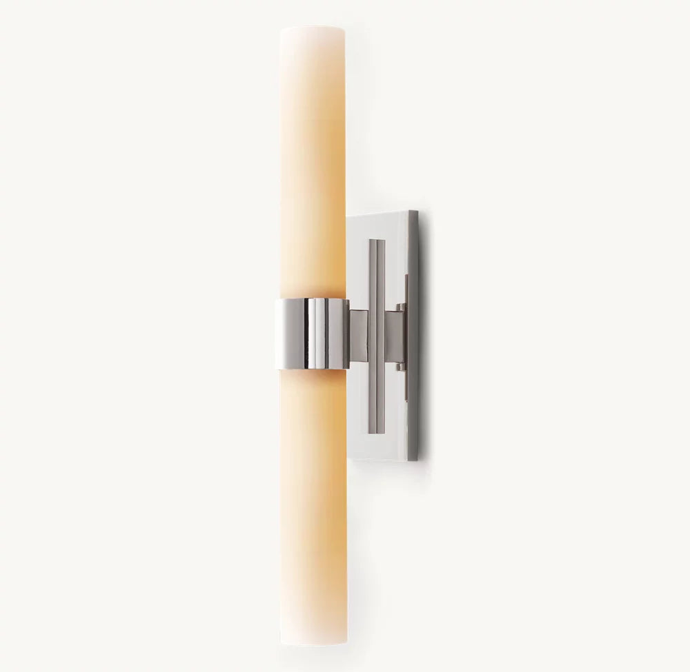 The series is crafted from solid steel, with simple metal rings securely supporting slender glass cylinders to create a perfect balance. Inside each cylinder, Edison bulbs emit a warm glow reminiscent of candlelight.