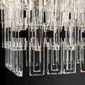 The chandelier is made of sand cast brass and K9 glass, a crystal used to make optical lenses and prisms. Connected with the O-shaped crystal. Inspired by industrial metal chains, it reimagines staggered open and closed links with amazing crystal glass. The pure, simple and stylized chain link is made of more than 600 crystals without wire suspension, creating a bright cascade and shining light.