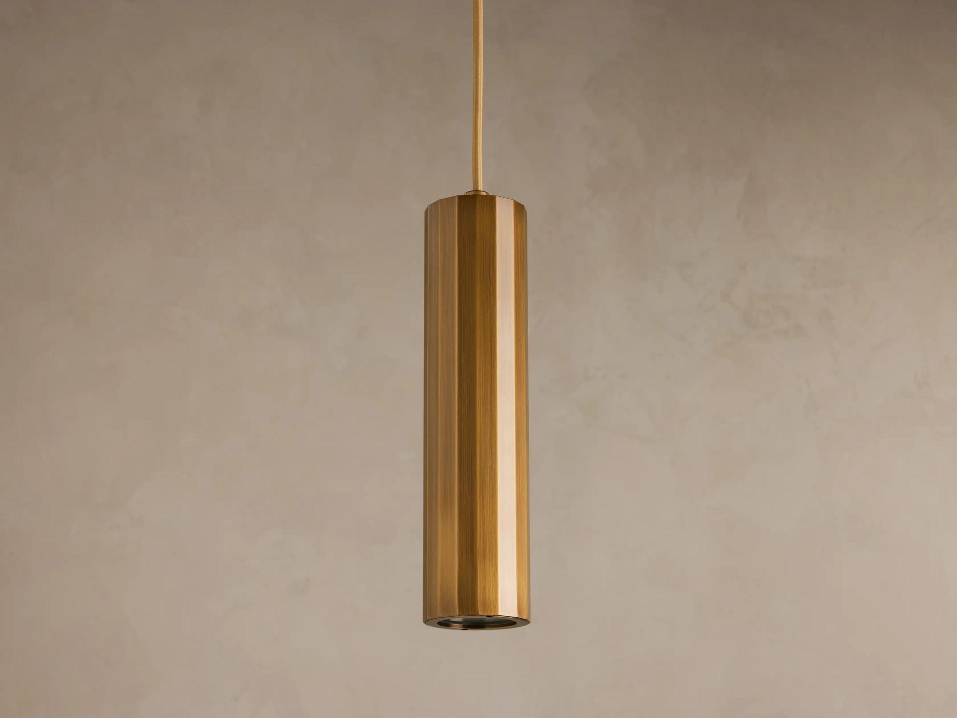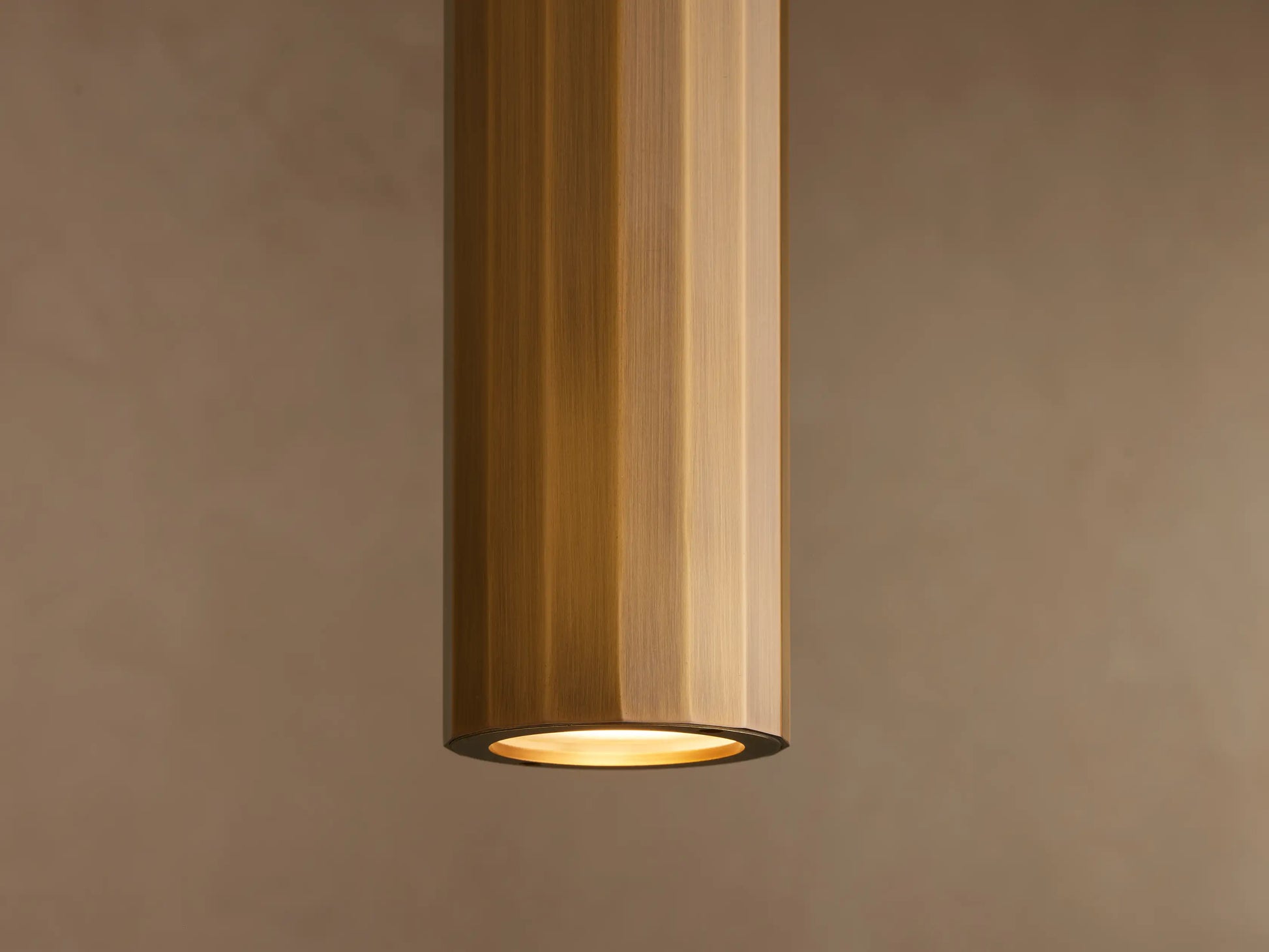 Our Matthe Collection features elongated, ribbed metal shades that descend from tonal adjustable cords; the textured surfaces catch the light with striking dimensionality to perfectly accent any space.