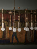 Expertly crafted with a marble-inspired design, the Millie Chandelier brings a touch of ancient elegance to any space. Its intricate marble beadwork, secured by fluted pins, adds a timeless charm to the leather-bound brass structure. Elevate your decor with this stunning piece.