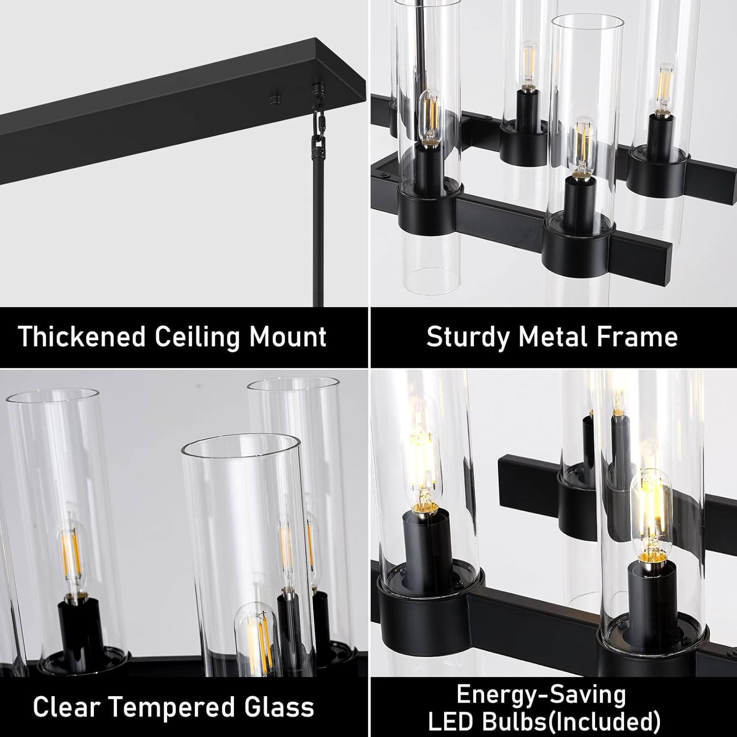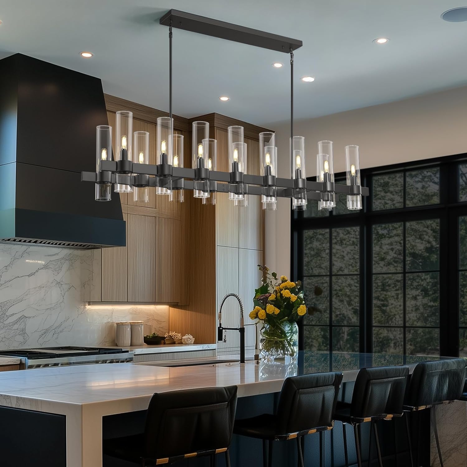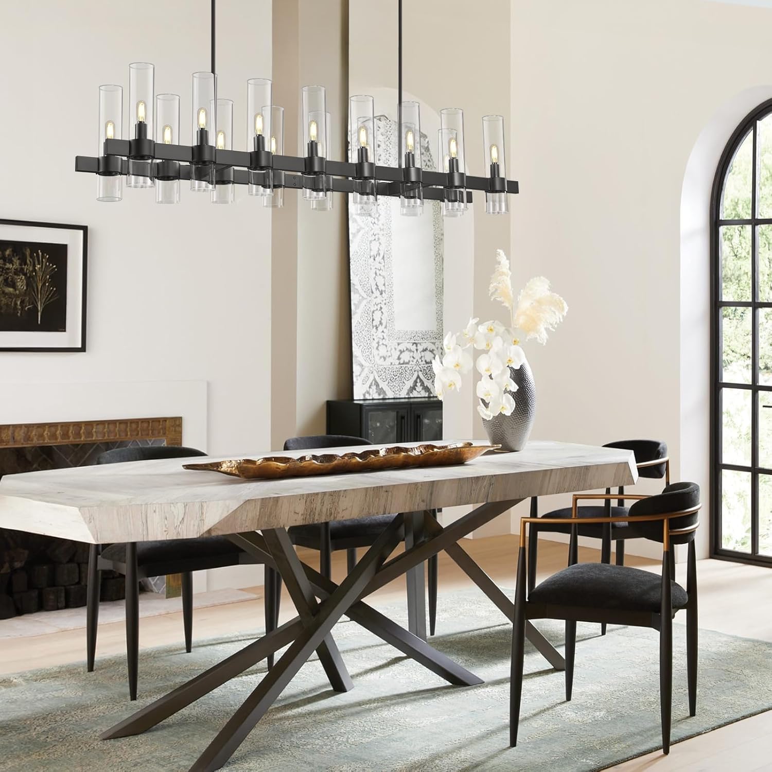 Modern Linear Chandelier for Dining Room, 54'' Rectangular Chandelier 16 Light