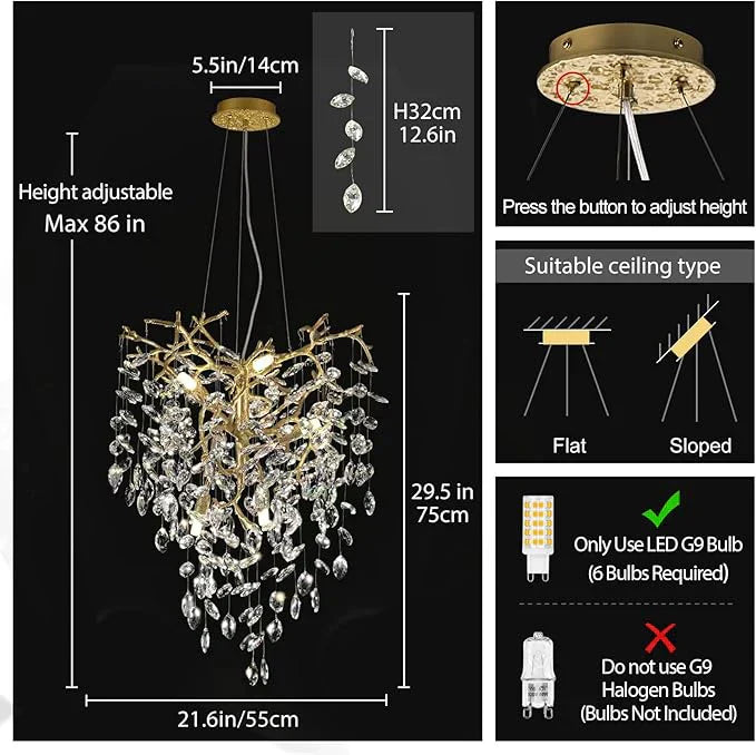 The Solara Rectangular Chandelier 21" 30" 40" Tree Branch Tree Branch stands as a luxurious and intricately designed masterpiece, ideal for grand staircases or as a captivating focal point in rooms or lobbies, making a bold statement. This chandelier is part of our branch detail chandelier collection, drawing inspiration from the beauty of nature and meticulously handcrafted to perfection.
