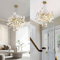 Embrace the beauty of nature with our Ginkgo Round Chandelier 23.6'' Crafted from 100% handcrafted ceramic ginkgo leaves and aerospace-grade aluminum, this stunning chandelier radiates opulence and charm. It symbolizes abundance in love, career, family, and friendship, making it the perfect addition to any space.