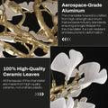 Embrace the beauty of nature with our Ginkgo Round Chandelier 32''. Crafted from 100% handcrafted ceramic ginkgo leaves and aerospace-grade aluminum, this stunning chandelier radiates opulence and charm. It symbolizes abundance in love, career, family, and friendship, making it the perfect addition to any space.